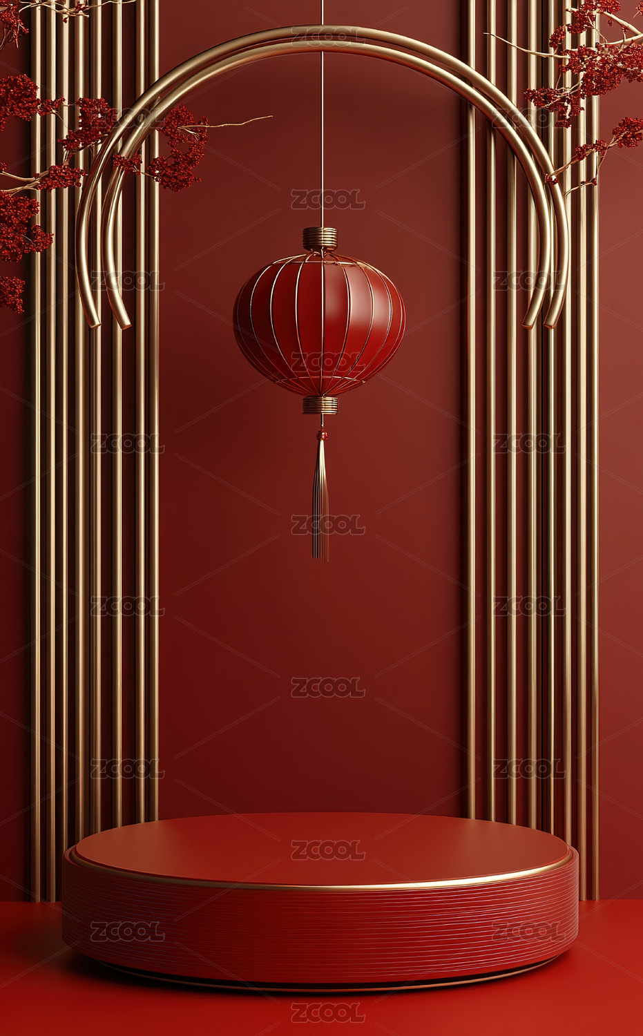 新年春节喜庆红色电商节日场景背景