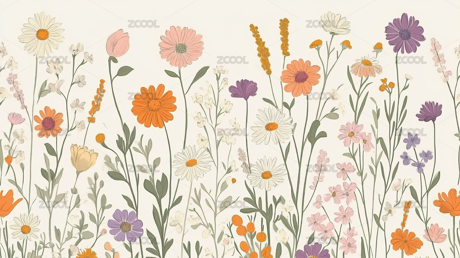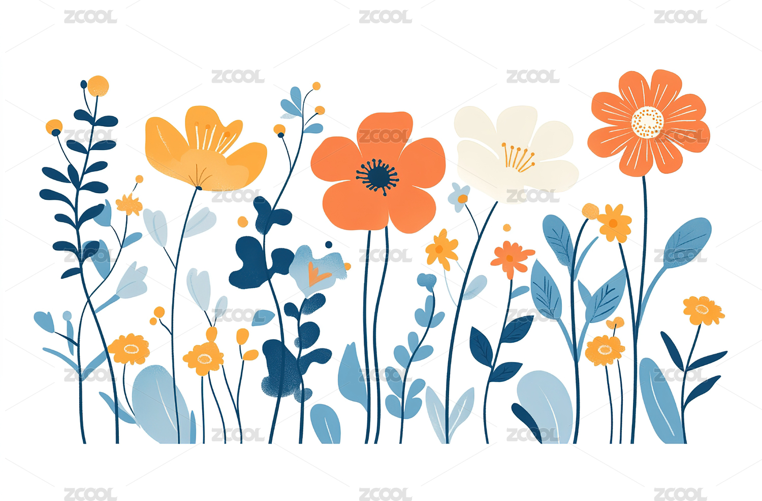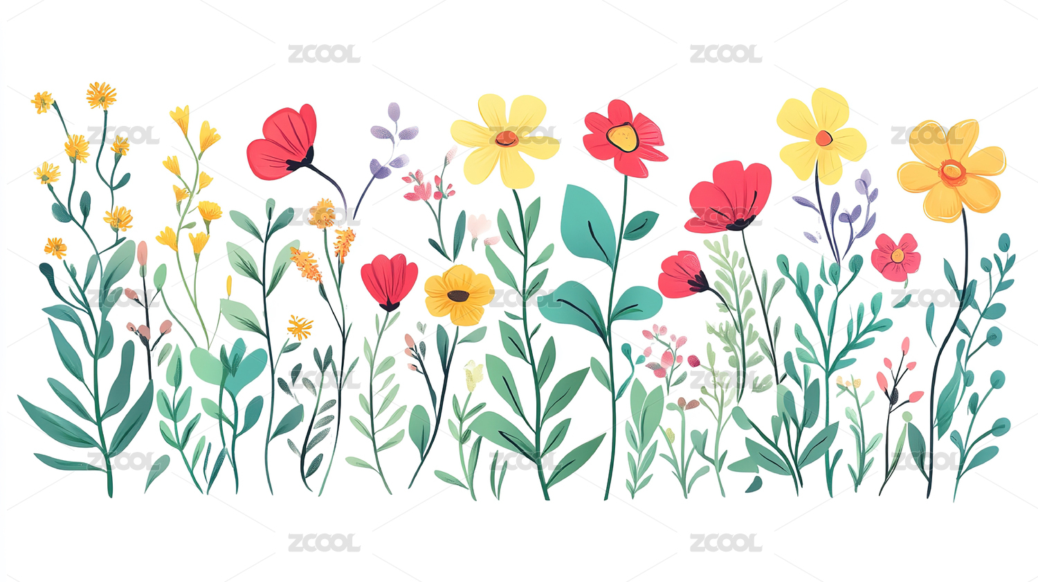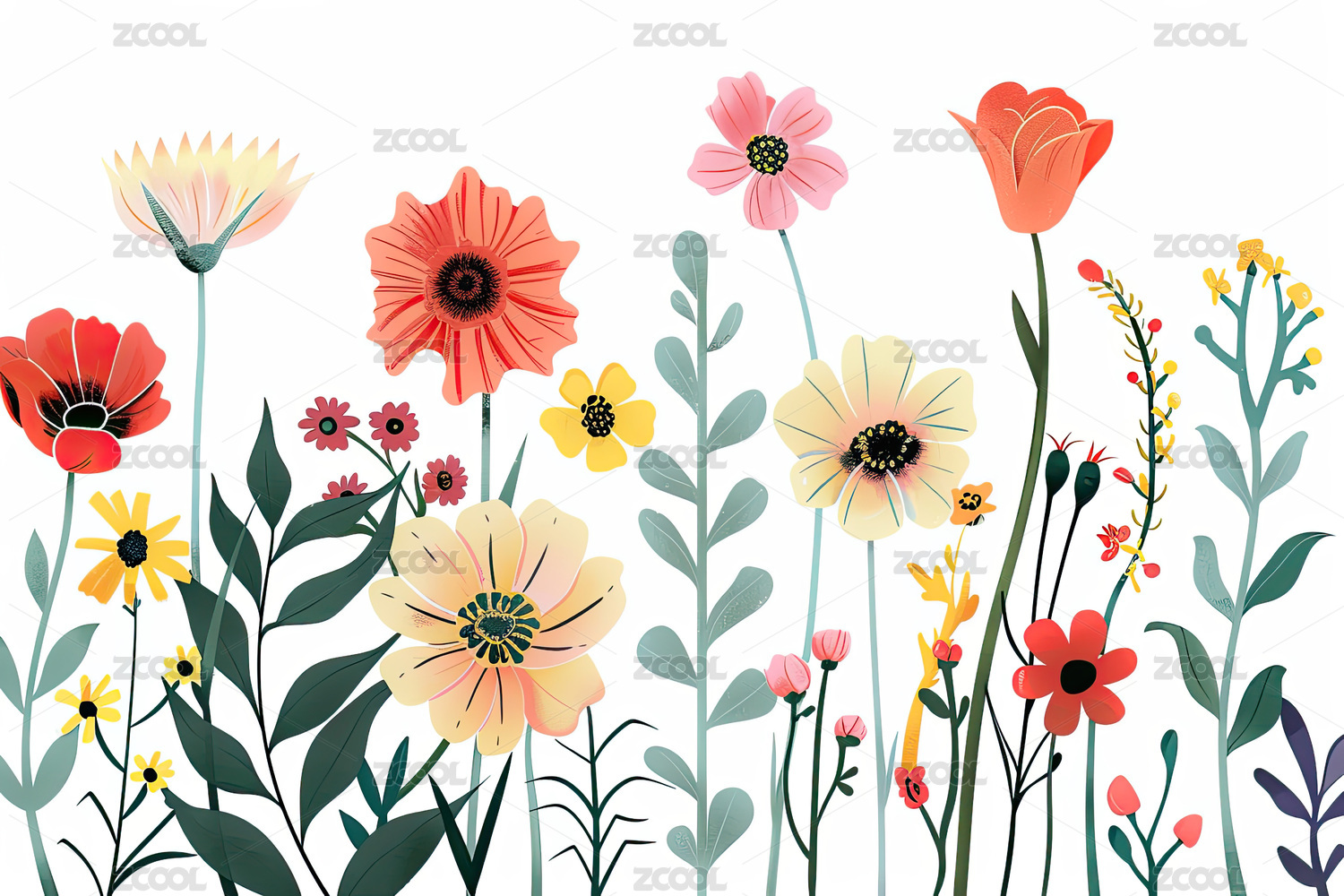 彩色花卉植物插图