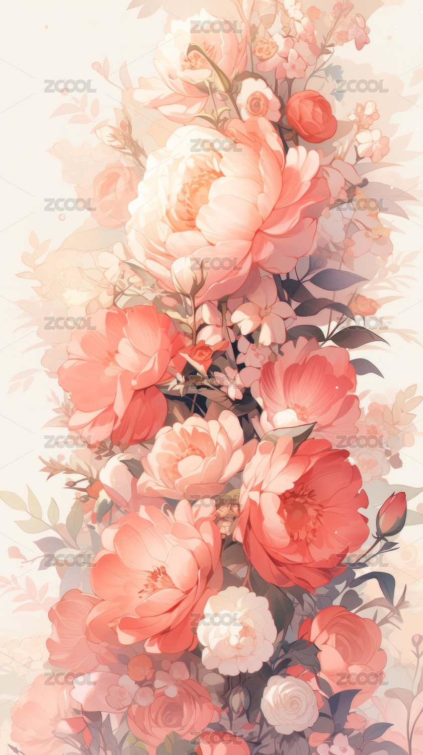 复古,粉红,牡丹,植物,自然,素描,艺术,抽象,花束,花
