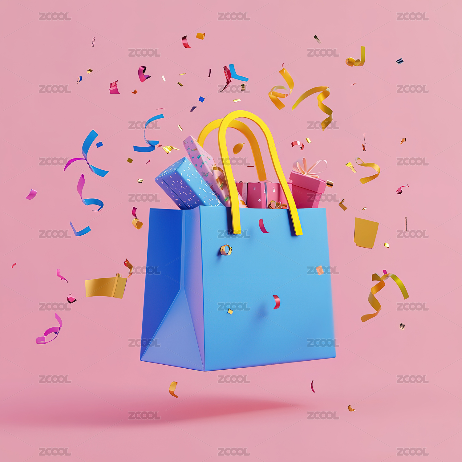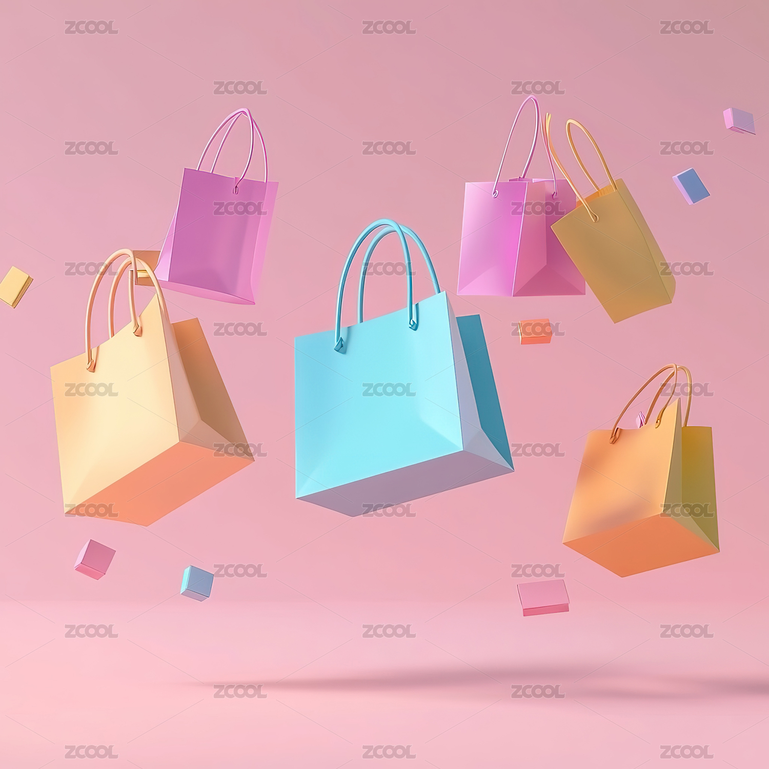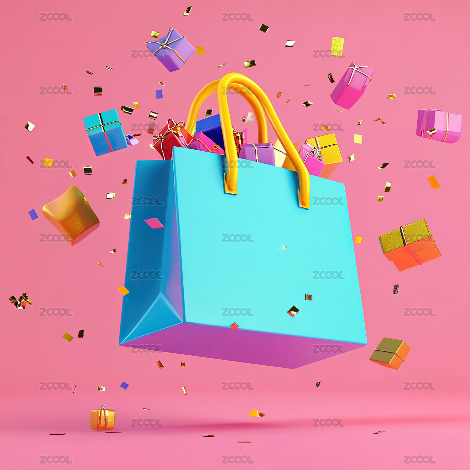 彩色背景下的购物袋和礼品盒特写镜头