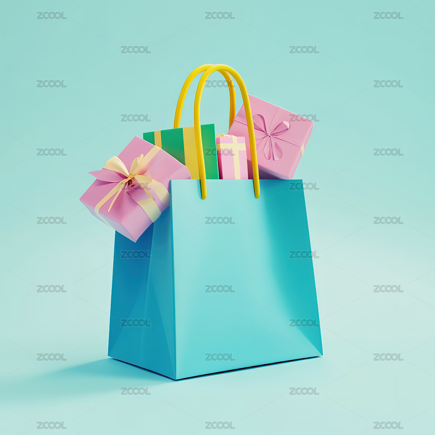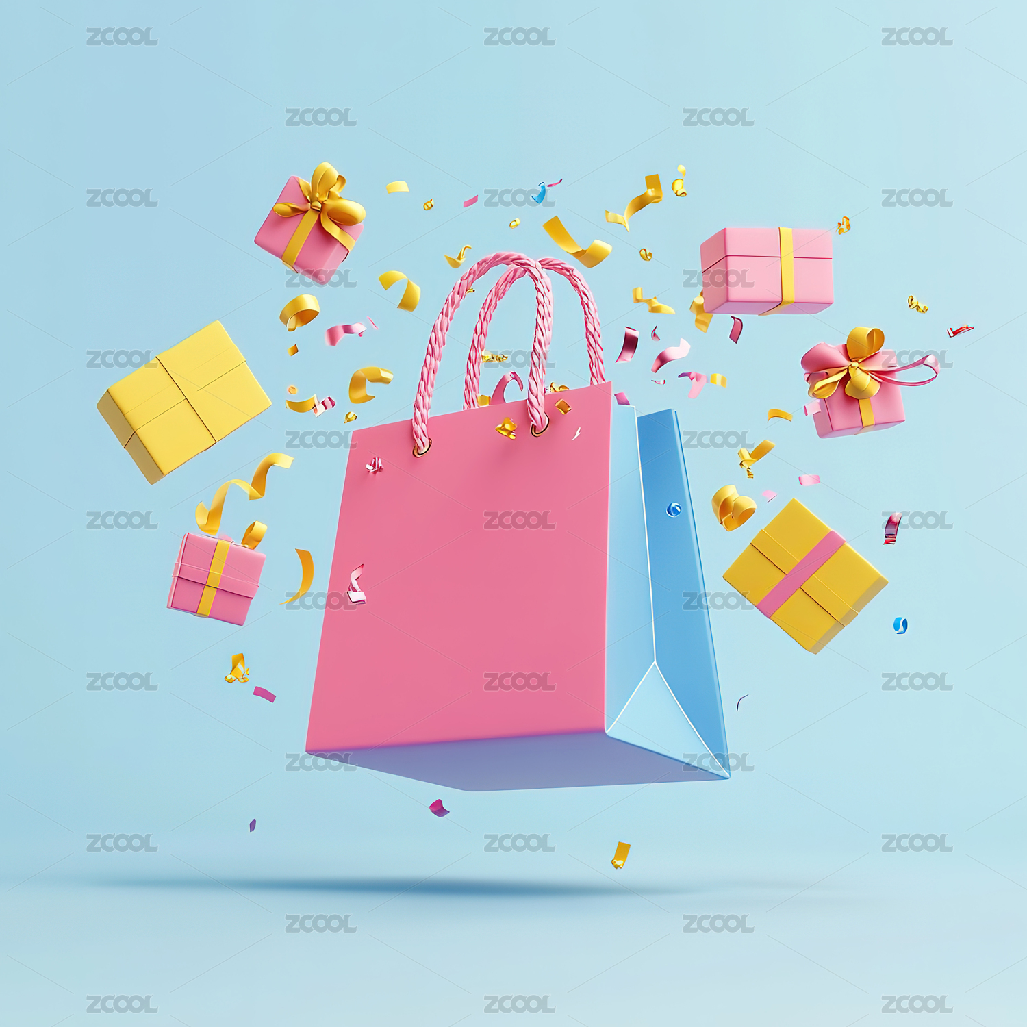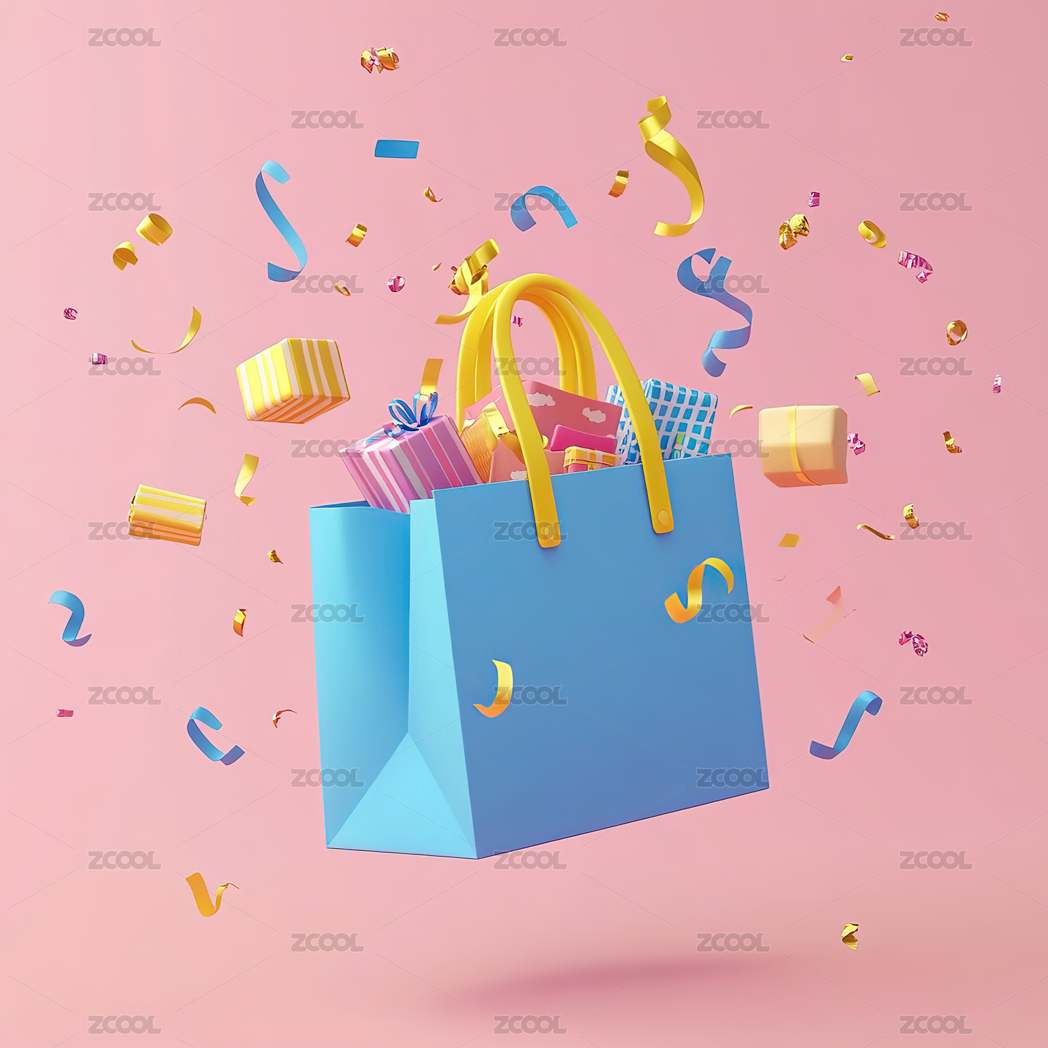 彩色背景下的购物袋和礼品盒特写镜头