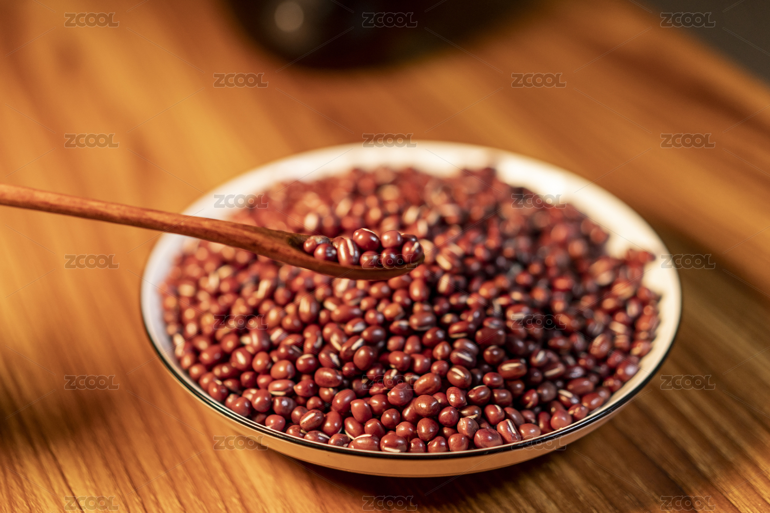 碗里木质茶勺里的红豆
