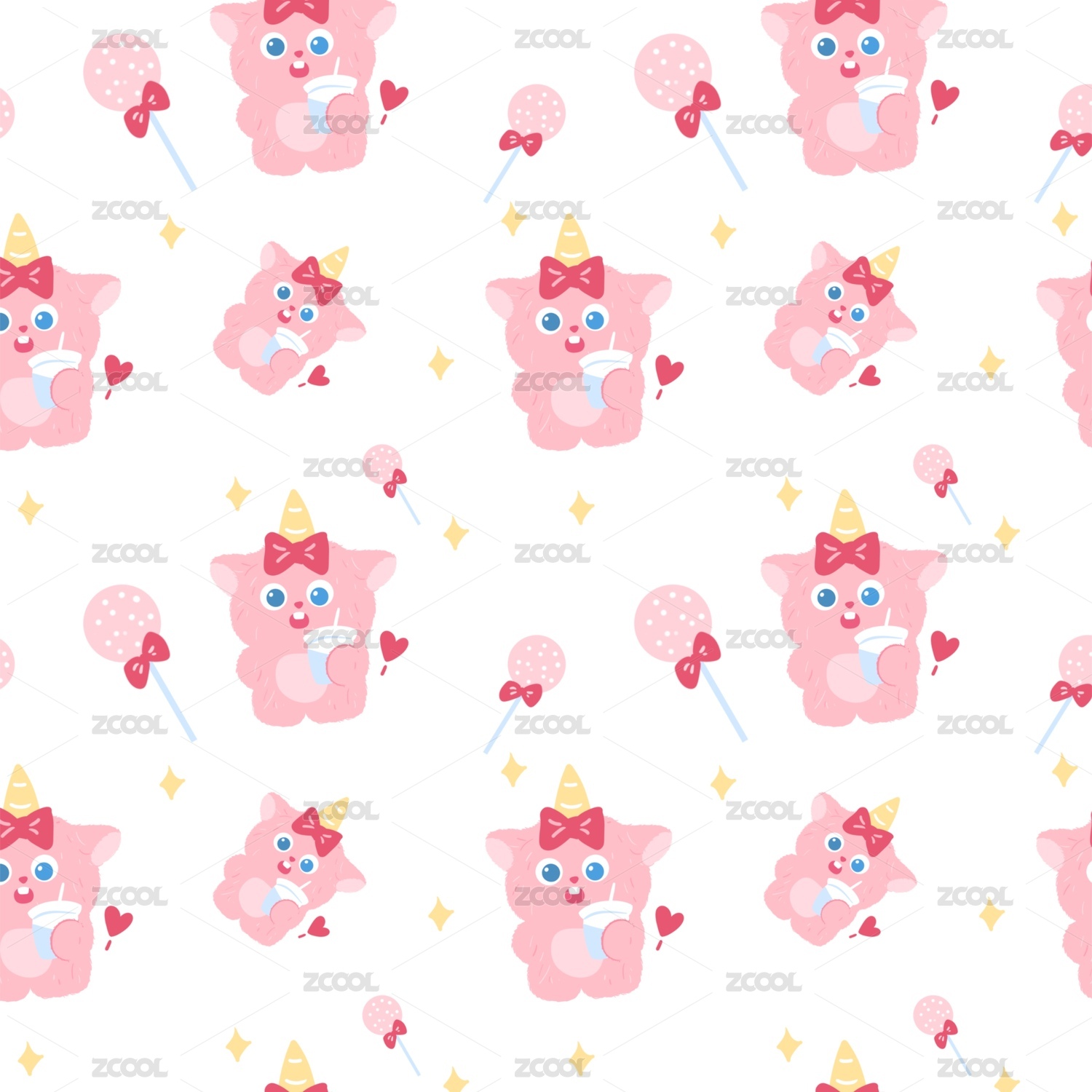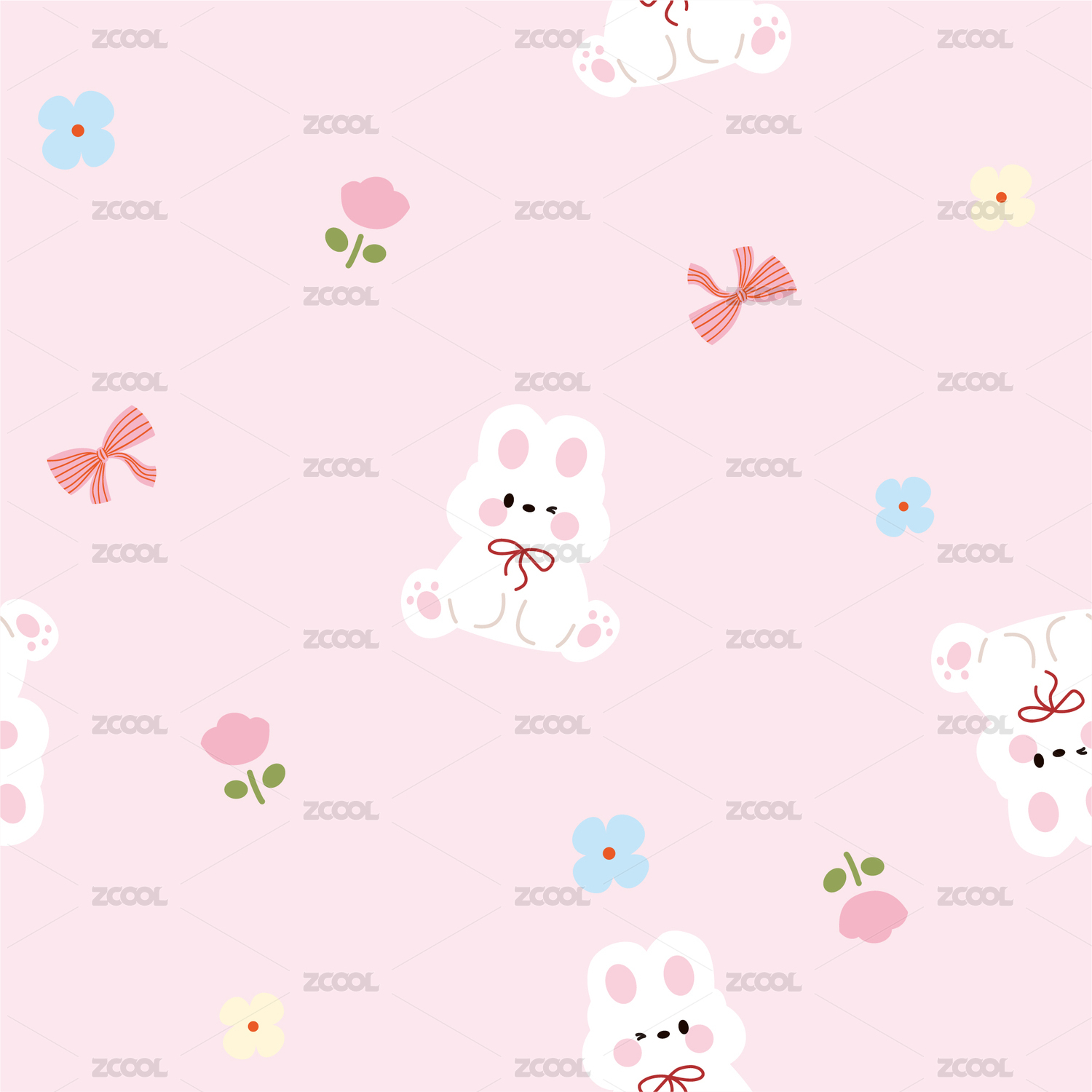 儿童可爱兔子卡通动物花朵无缝背景印花