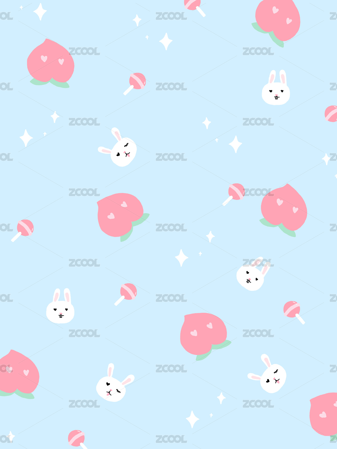 可爱风卡通小白兔草莓无缝四方连续背景印花
