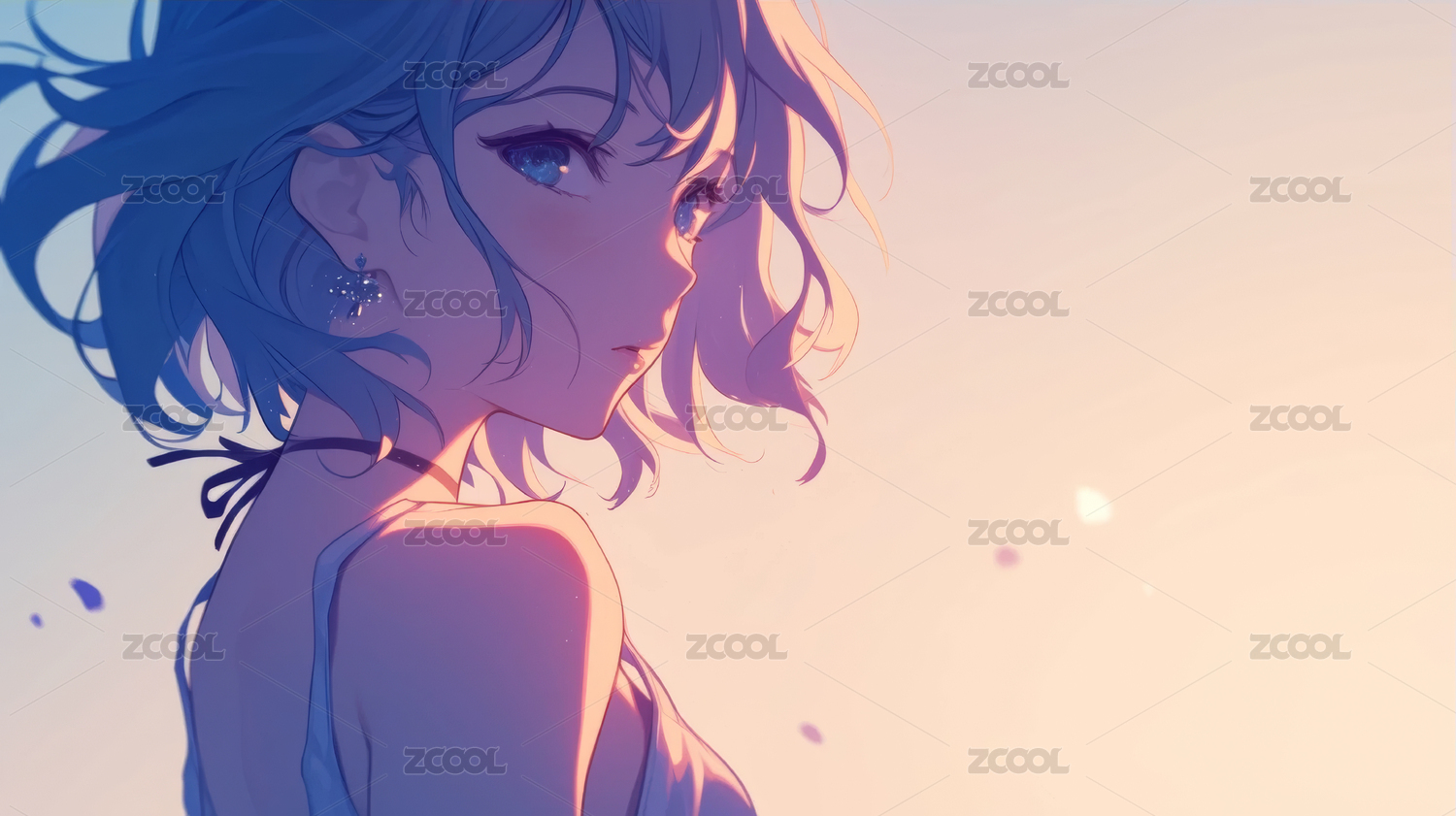 人像,女孩,夕阳,女性,可爱,短发,田野,天空