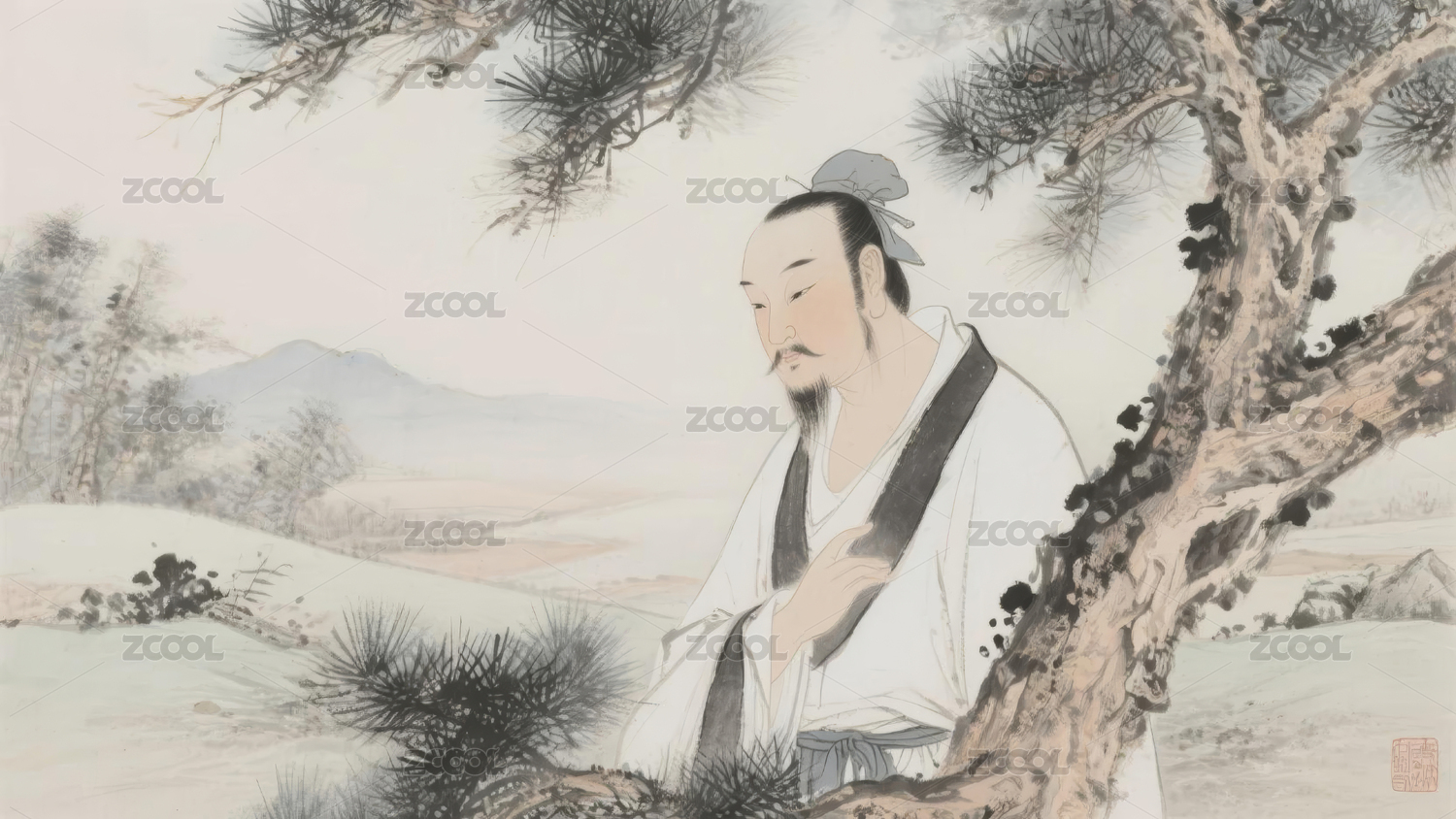 古风,国画,古代绘画,中国,传统,松树,松,宣纸,古代,中国风