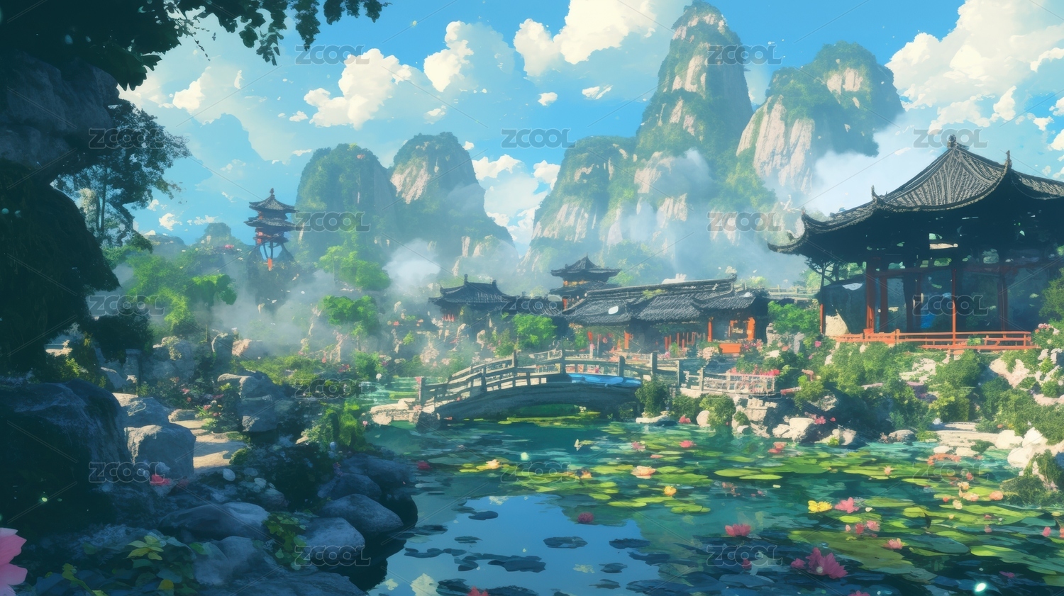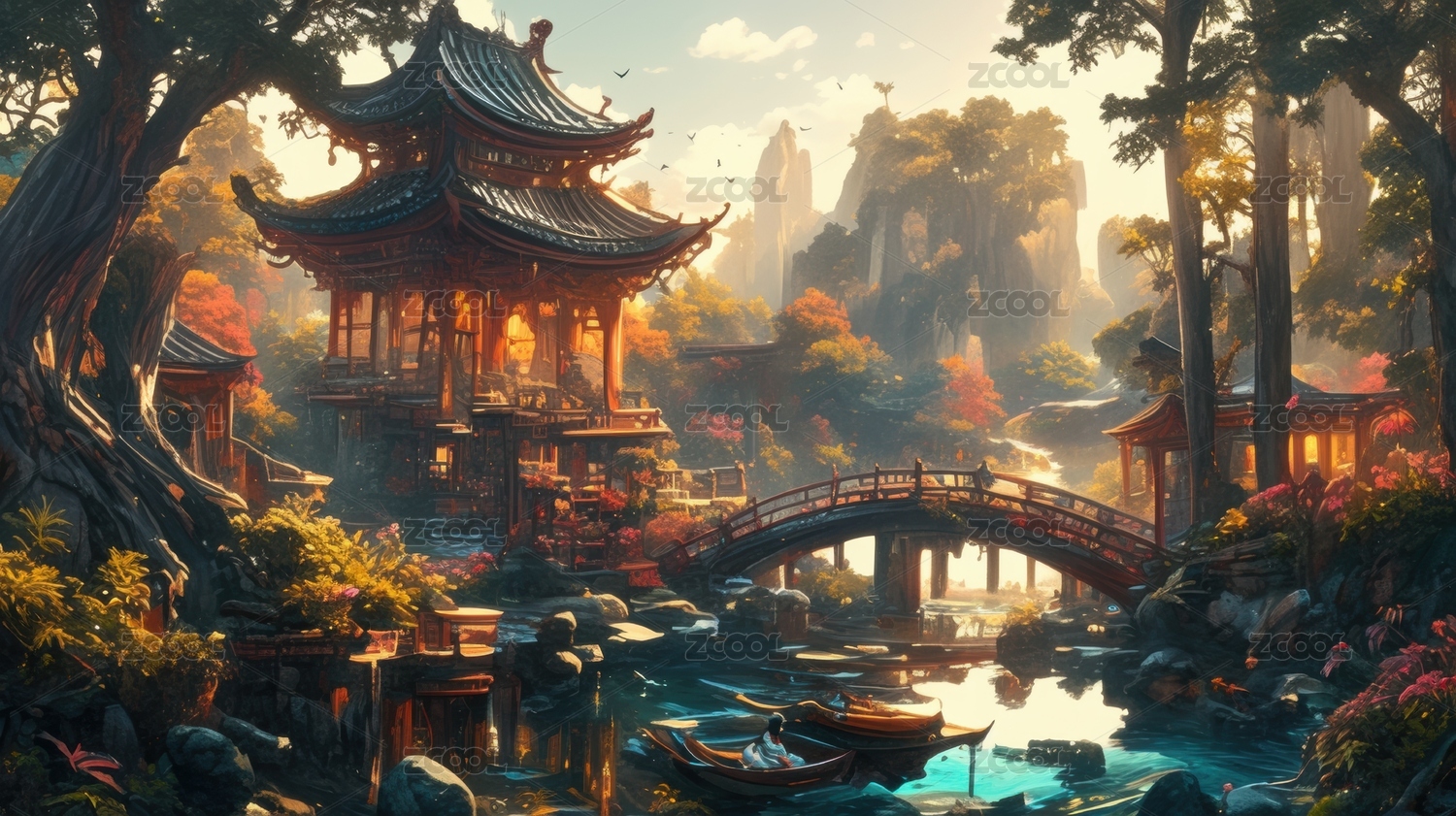 古建筑,中国,中国风,传统,国风,大气,宏伟,建筑,水墨,淡彩