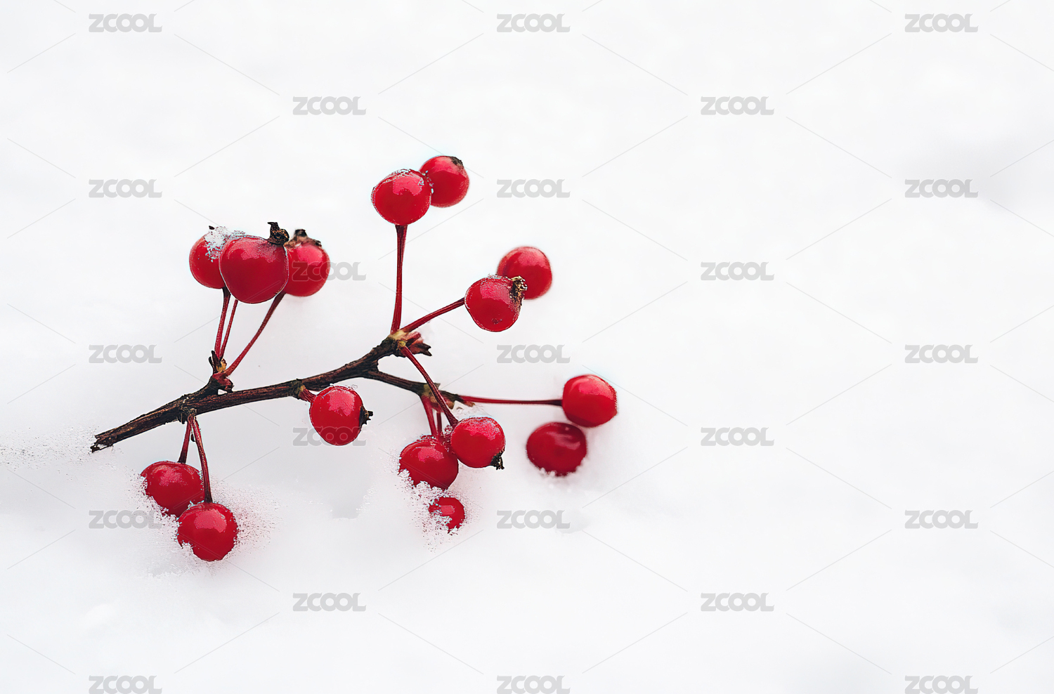 白雪中的红色果实