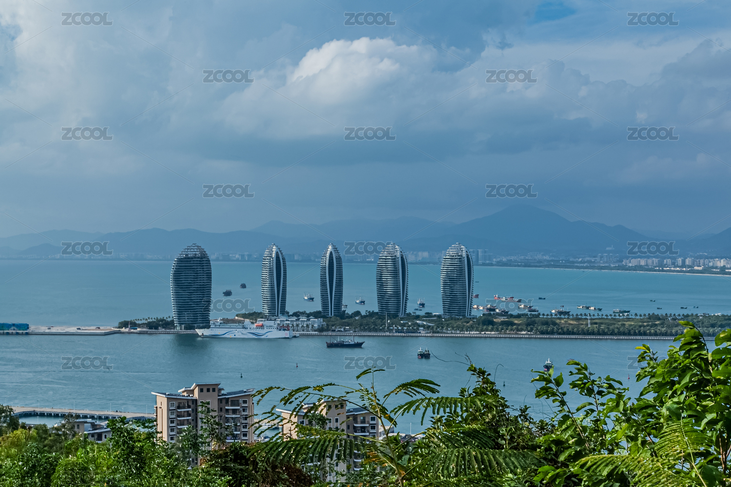 海南三亚鹿回头风景区俯瞰帆船酒店