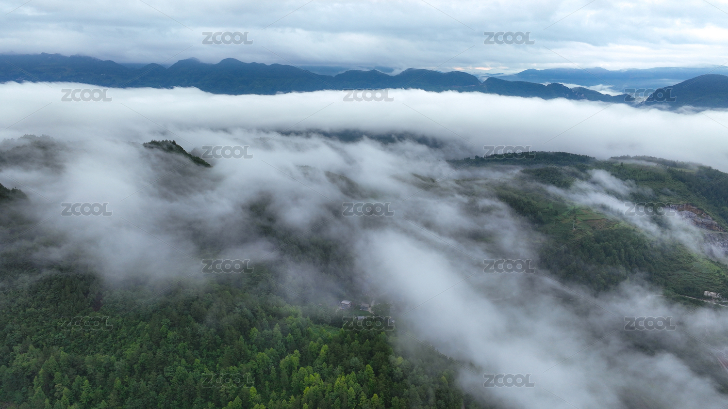 重庆酉阳清晨小雨雾满山