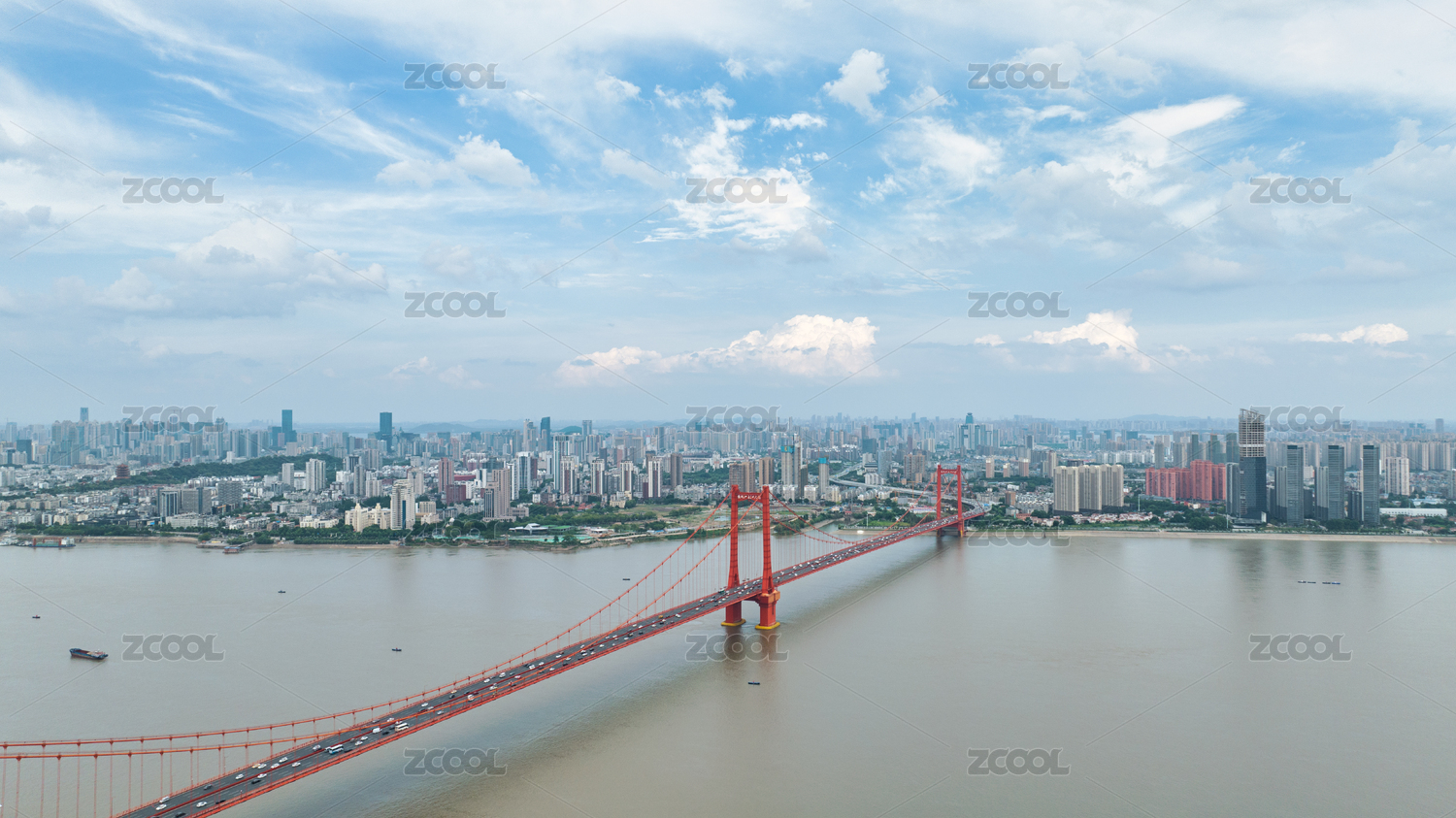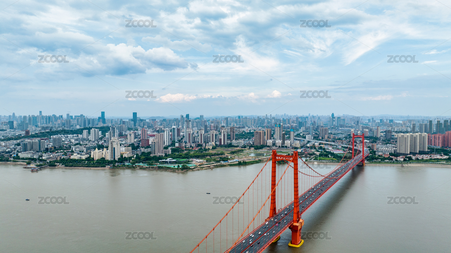 湖北省武汉市鹦鹉洲长江大桥建筑航拍风光