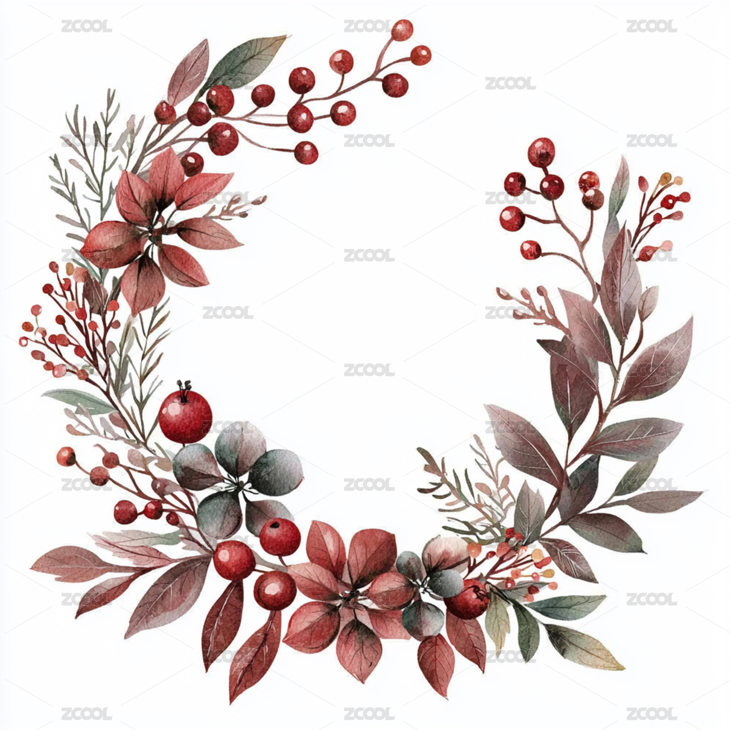 水彩浆果花环装饰