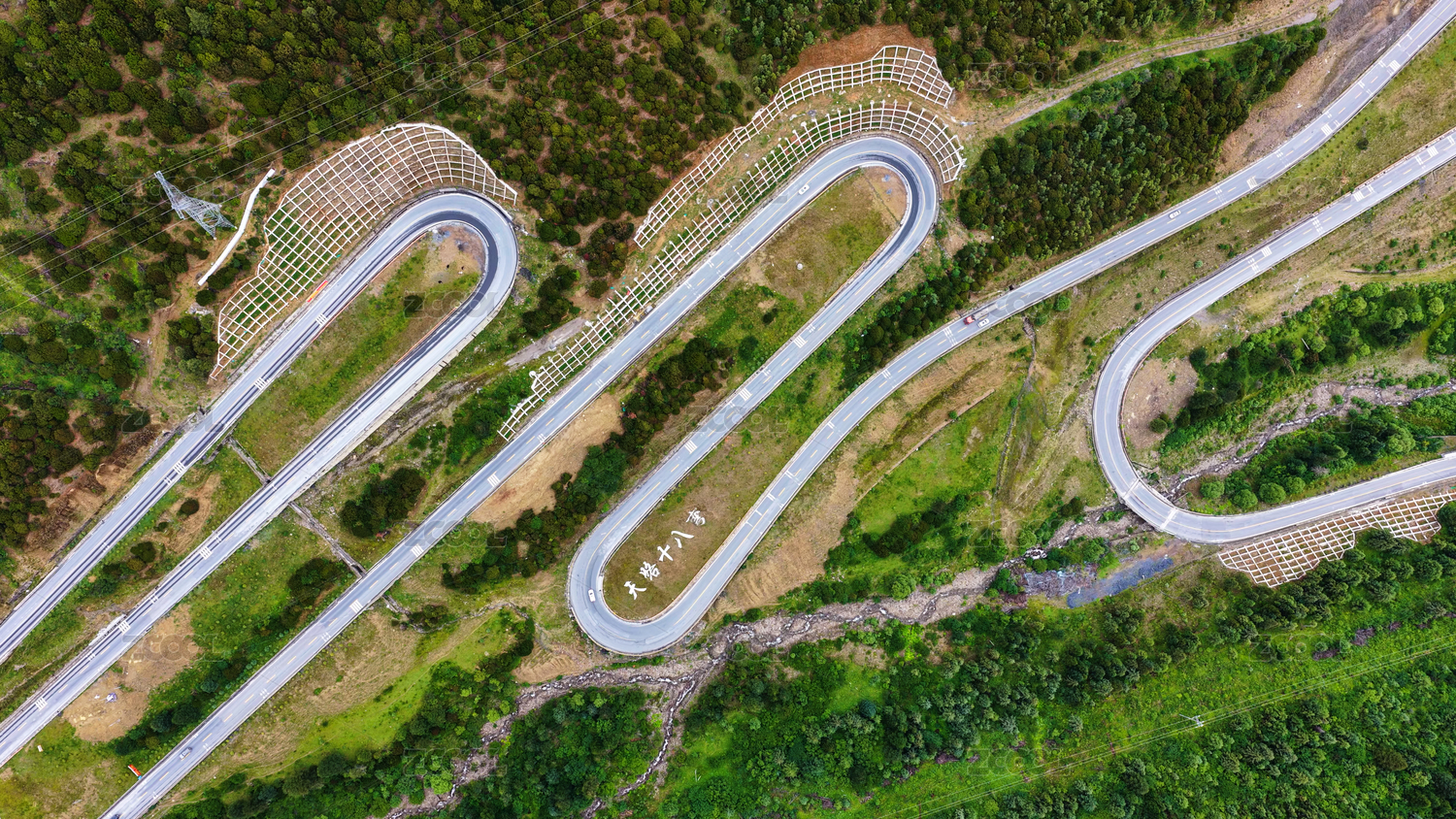 青州仰天山九龙盘蜿蜒山路夏日风景航拍