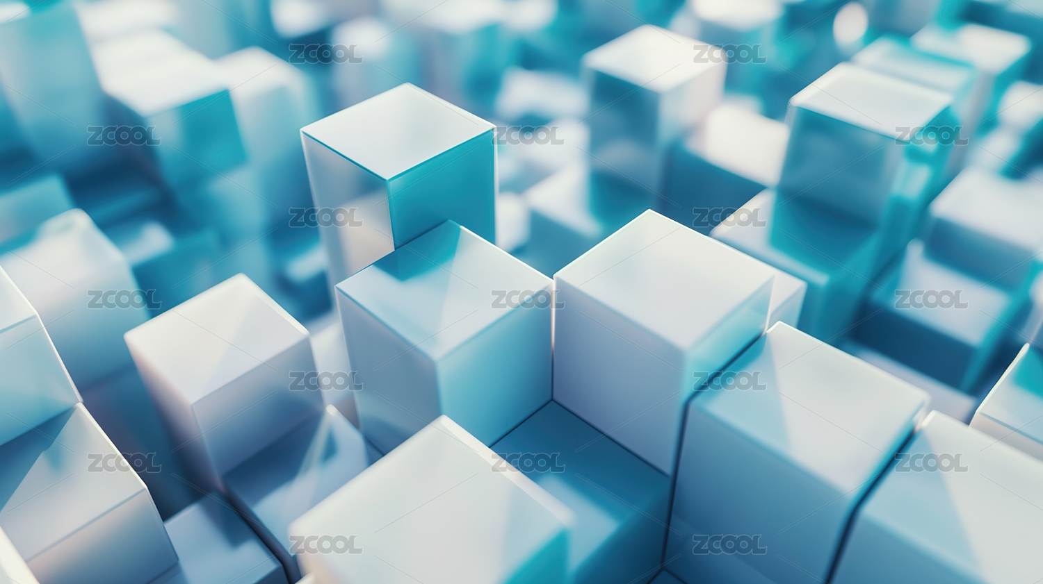 数码科技蓝绿色抽象方块海报网页PPT背景