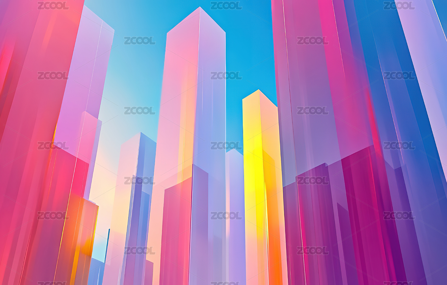 粉蓝红几何块交织呈现简约艺术的城市视觉