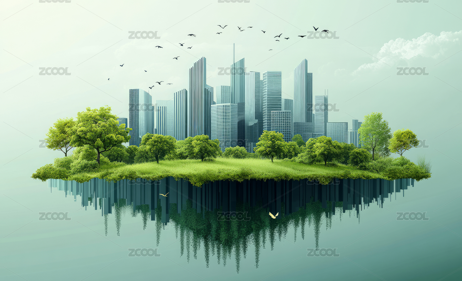 绿色生态环保城市建筑概念插画