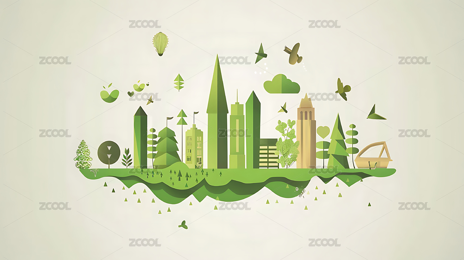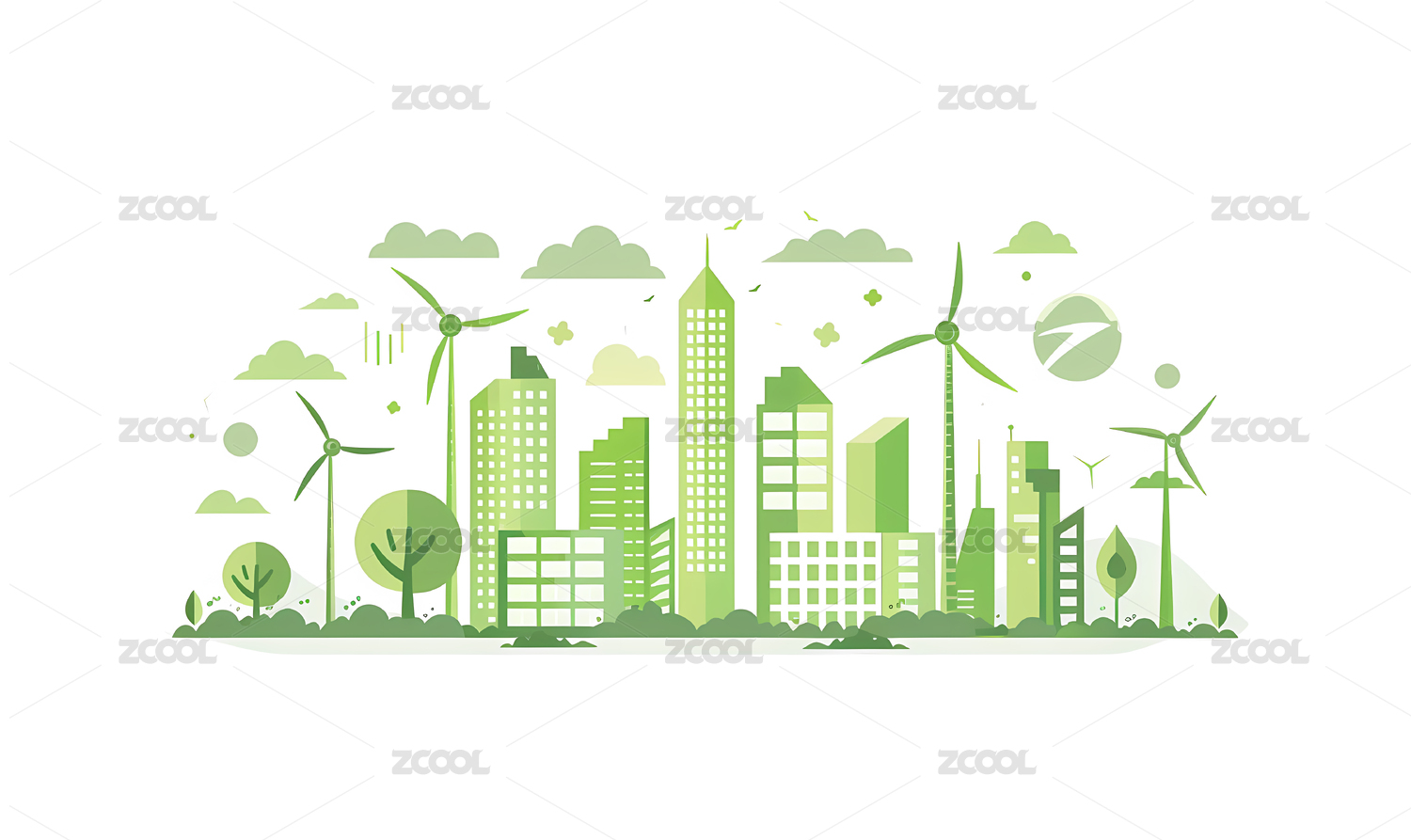 绿色环保主题城市插画