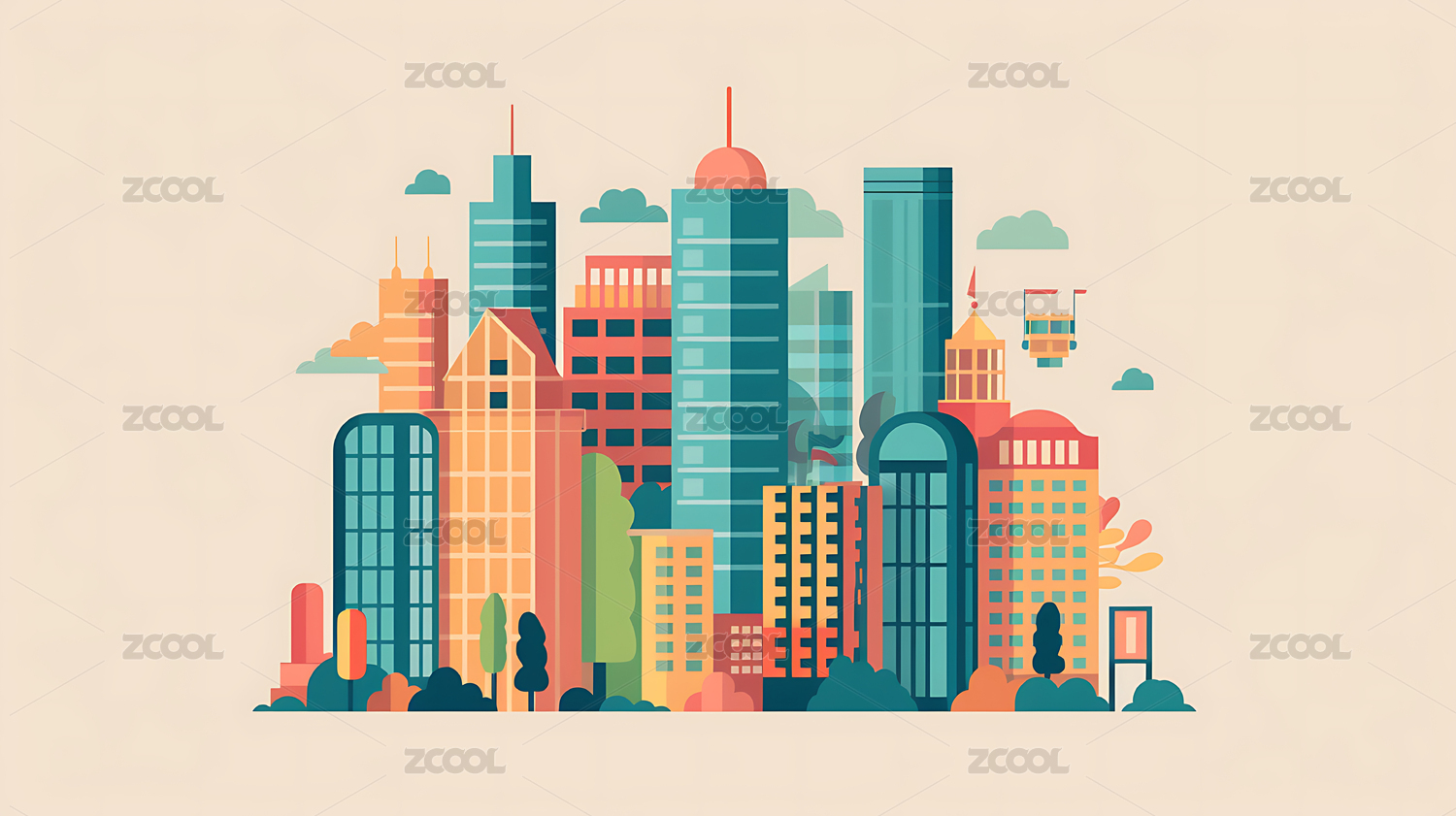 城市建筑群矢量扁平插画