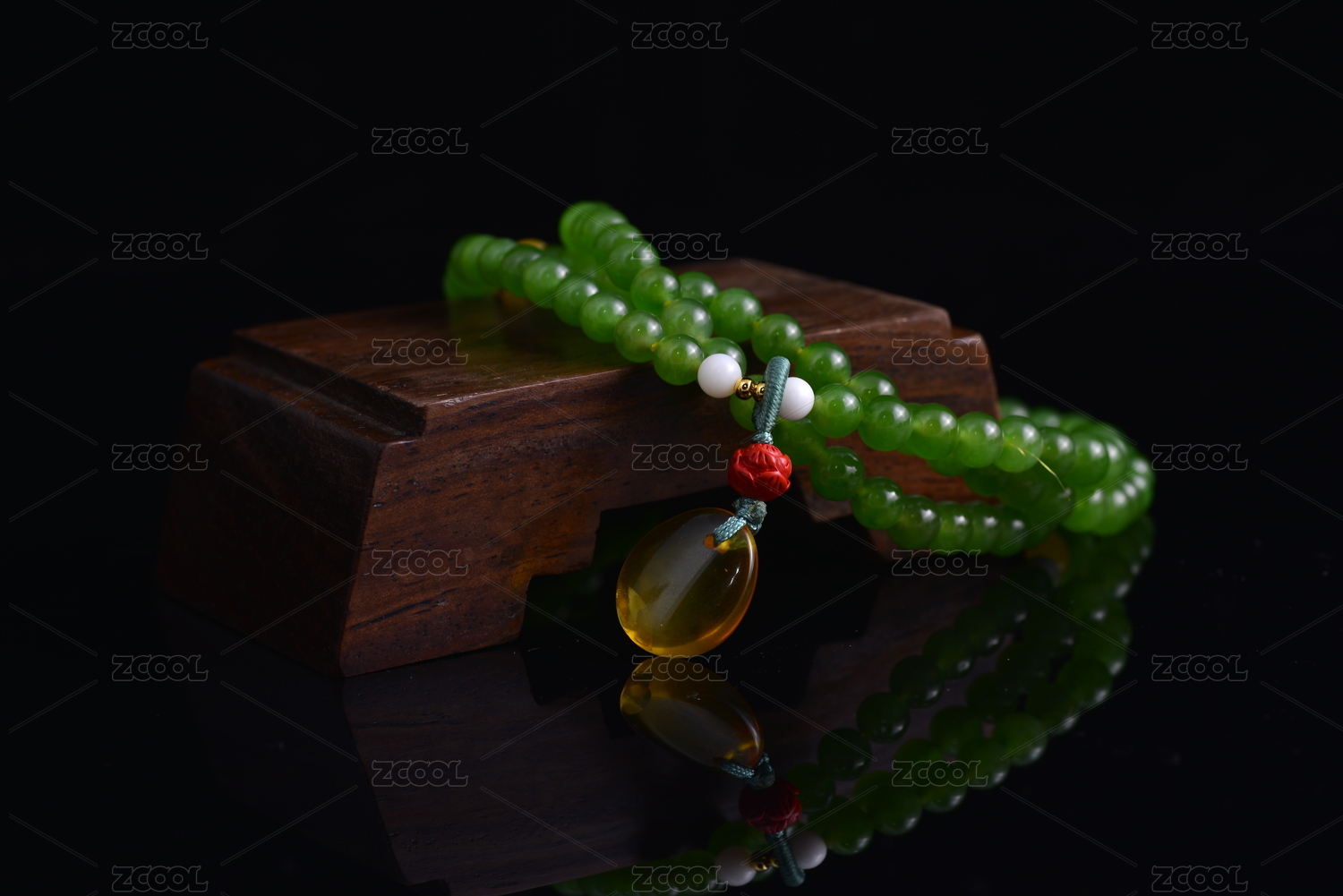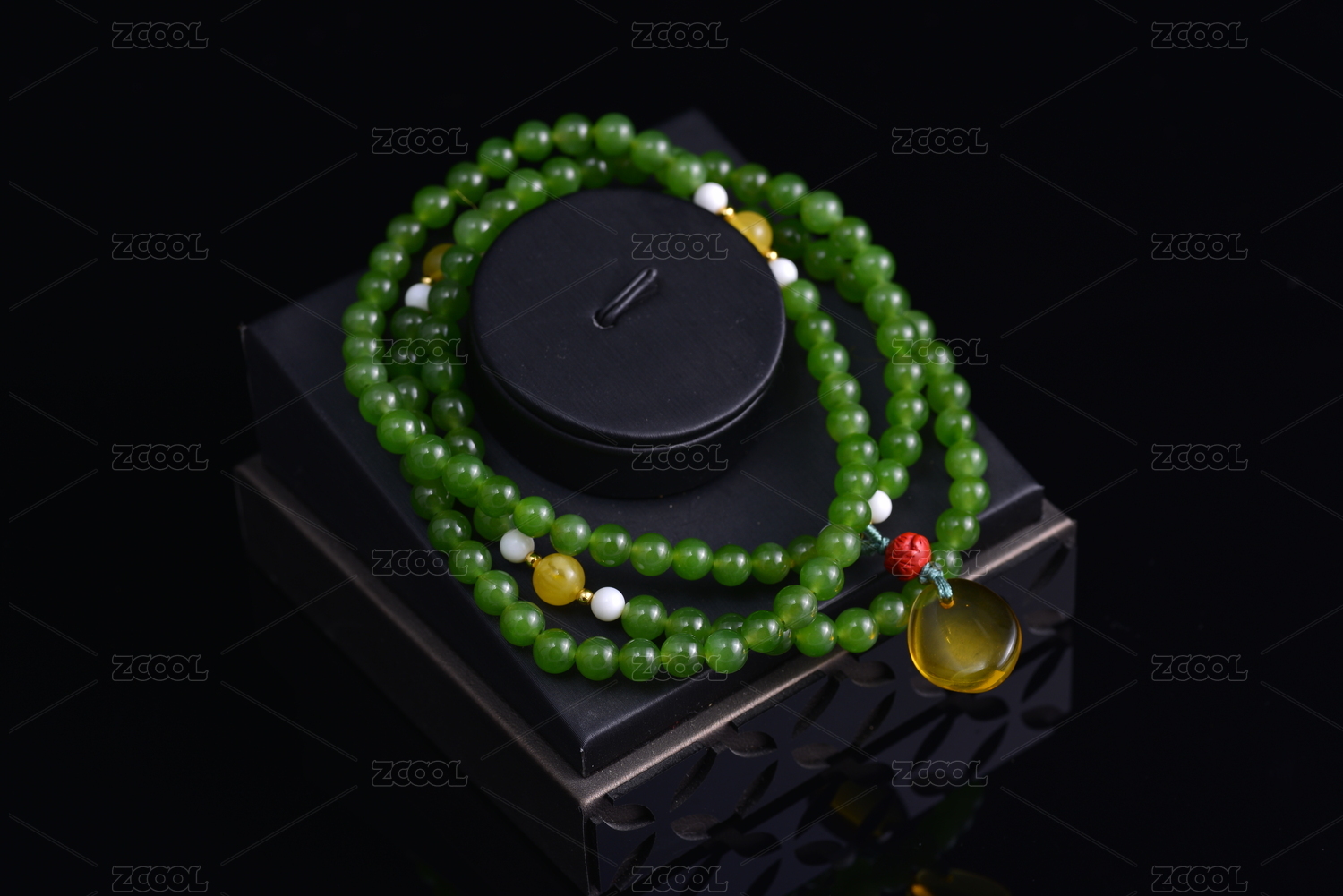 复古深色背景上的蜜蜡琥珀手串项链