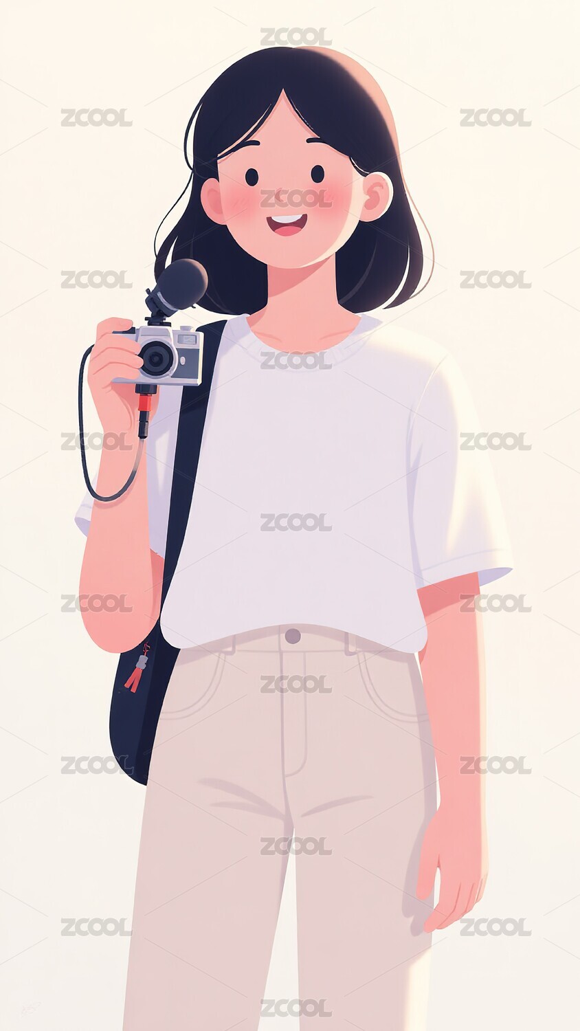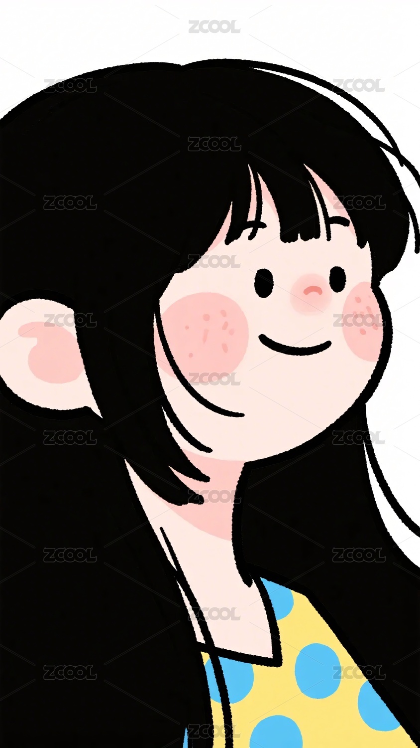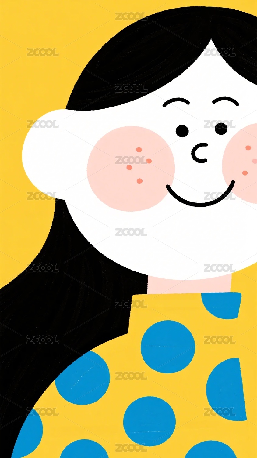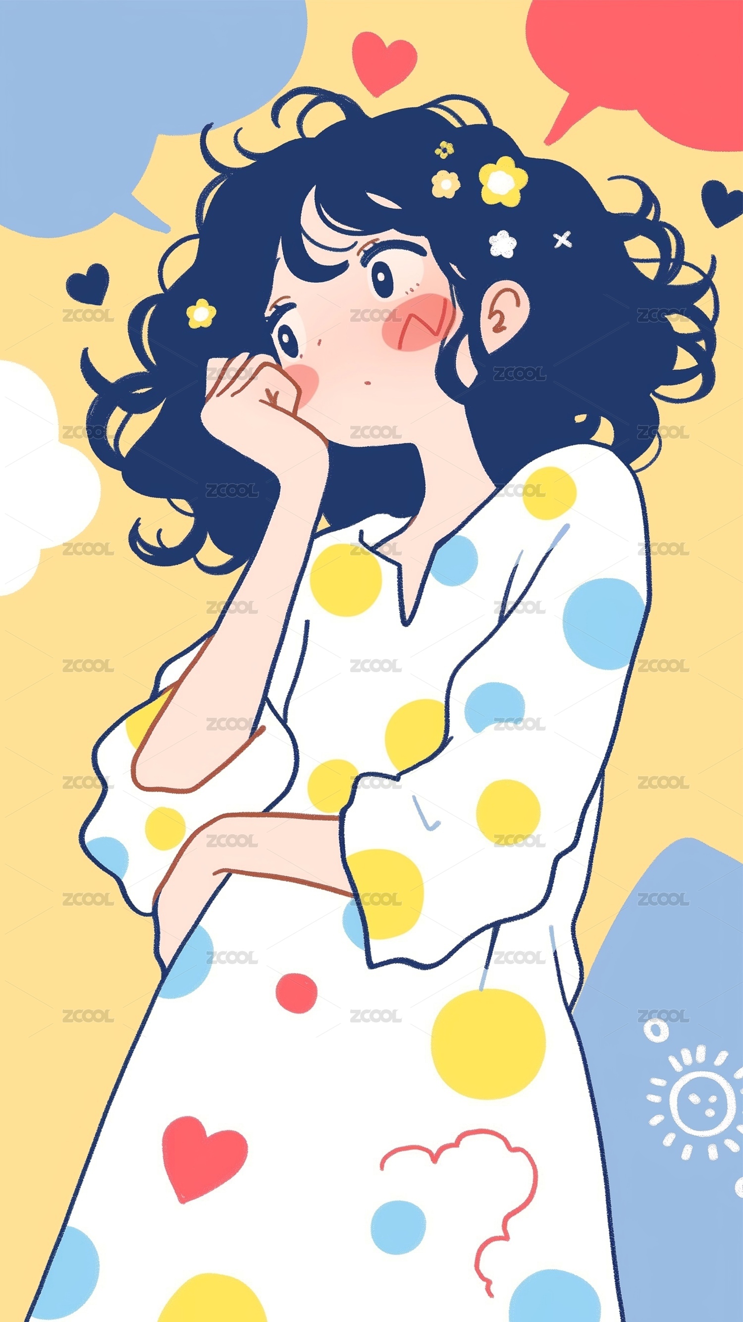 女生,插画,短发,放大镜,波点,卫衣,青春,工作,白领,简笔画