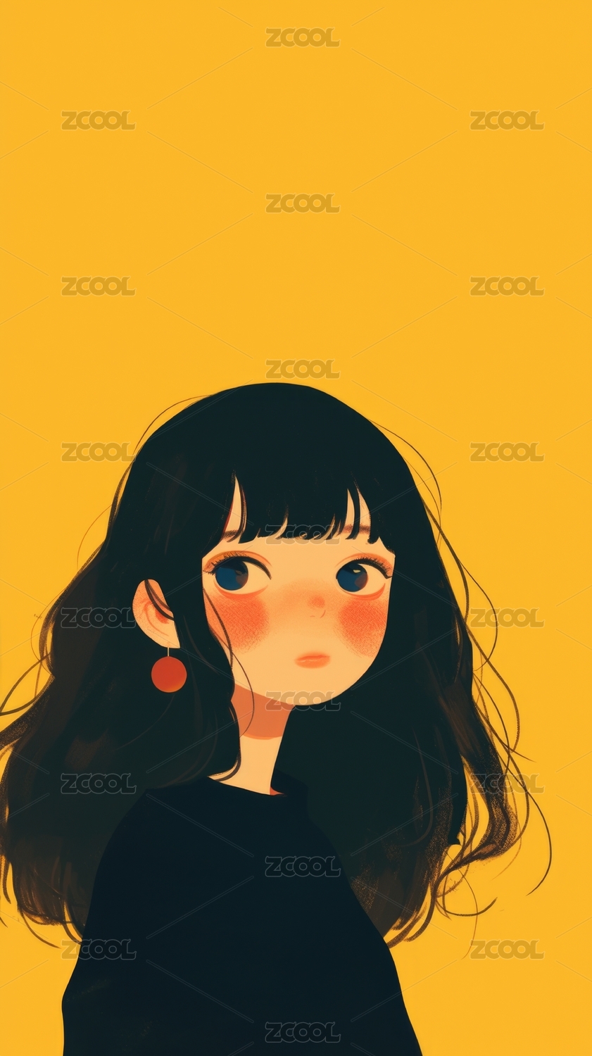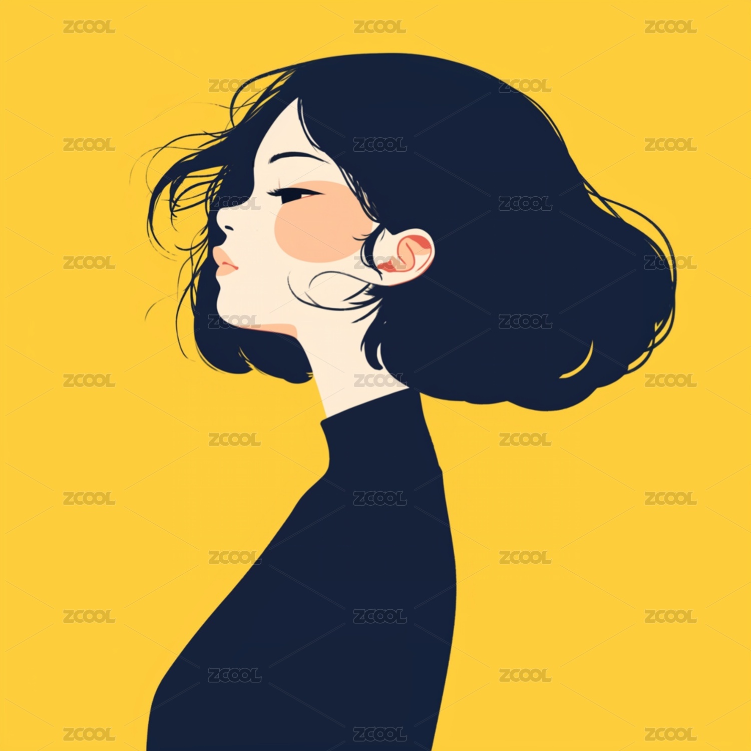 黄色少女时尚肖像大头照矢量扁平化设计背景