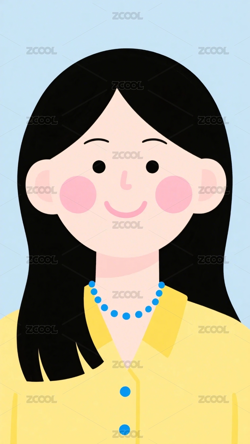 黄蓝少女时尚肖像大头照矢量扁平化设计背景