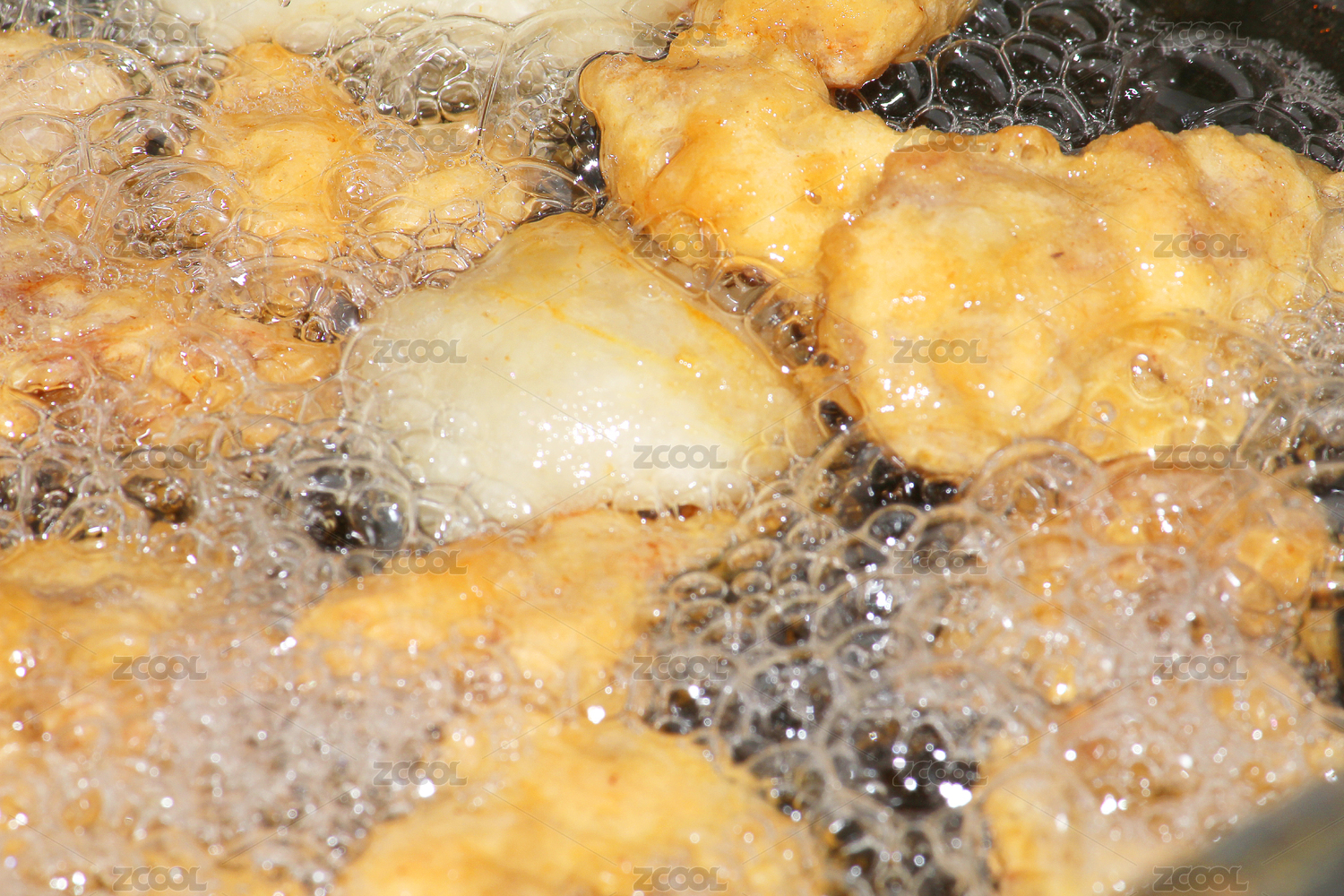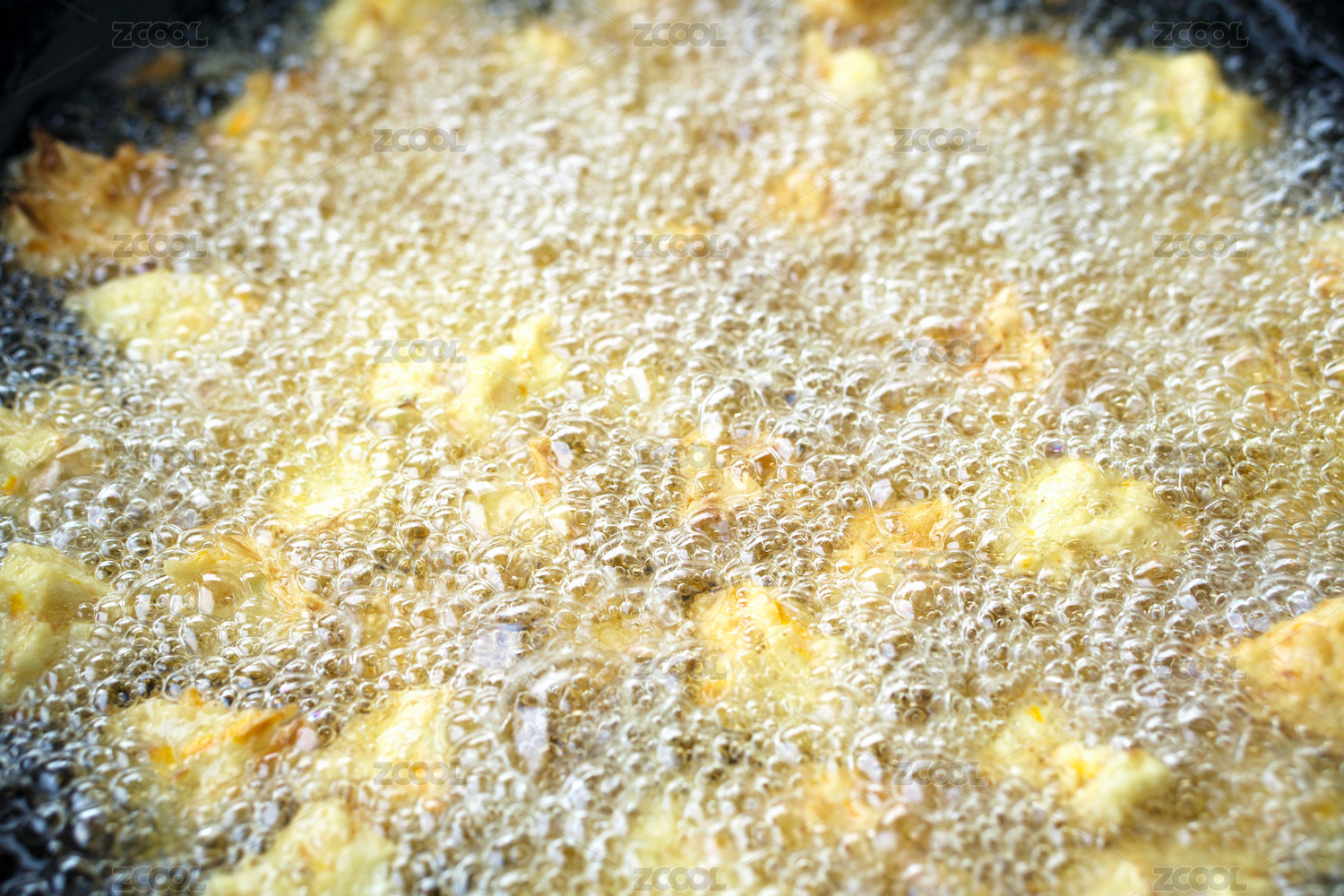 热油中正在炸的素丸子
