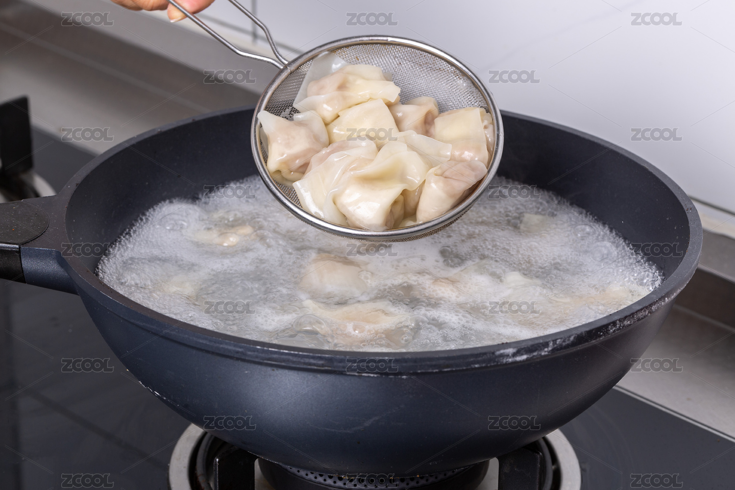 正在用不粘锅煮馄饨
