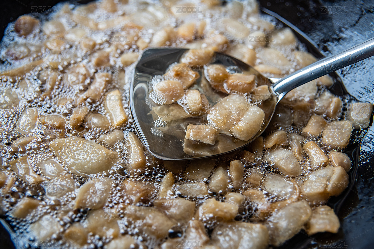 铁锅炼猪油炸油过程