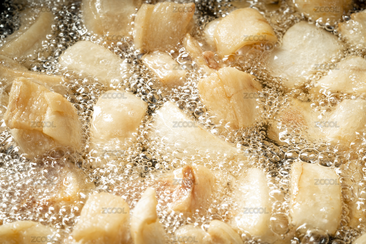 一份正在烹饪的油炸猪肉块