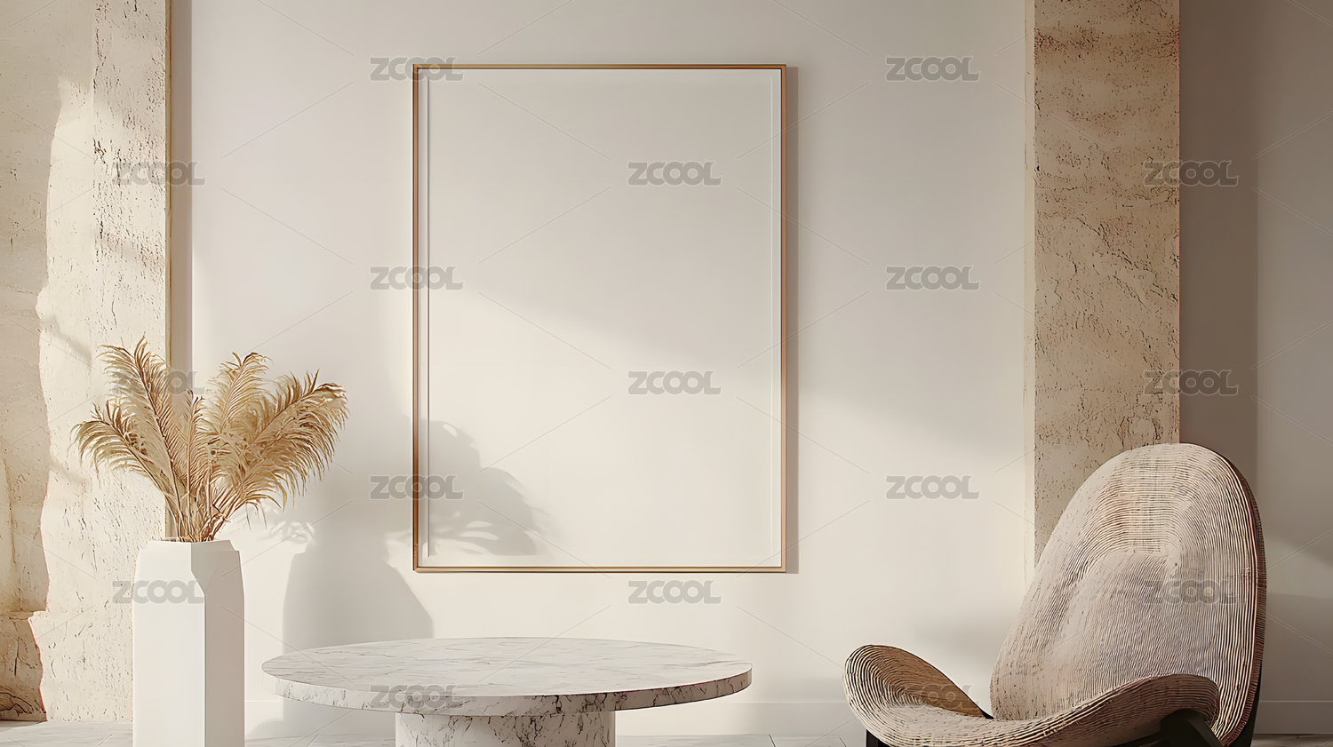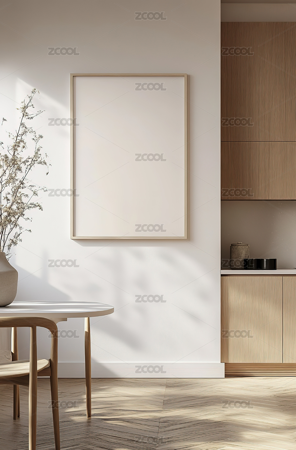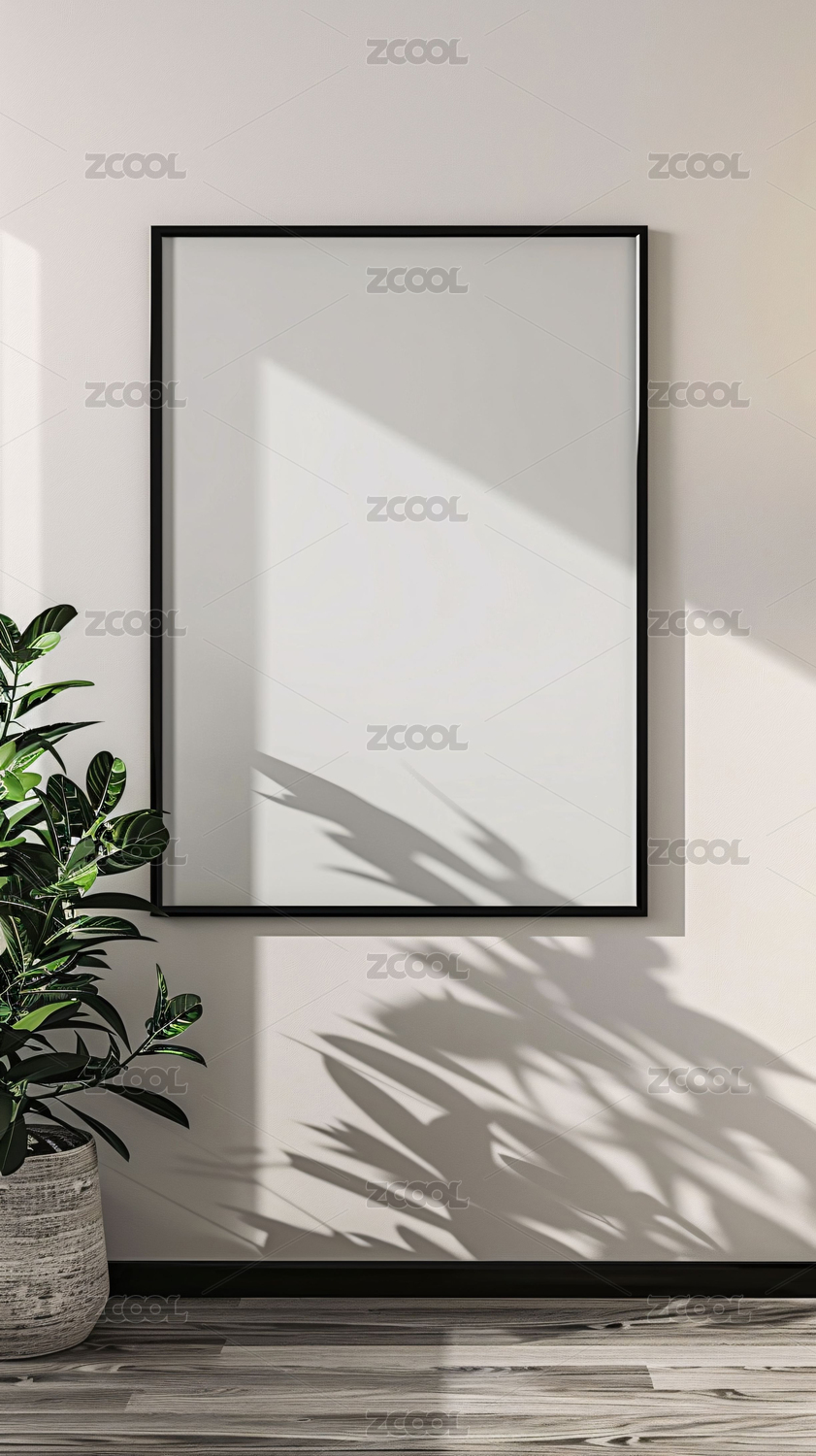 房间桌子植物空白框架装饰画模板概念背景