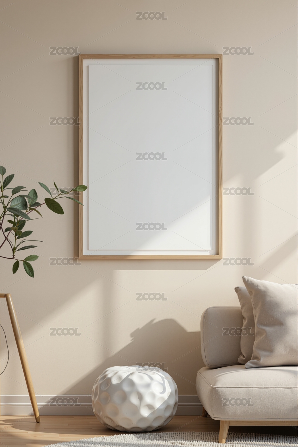 简约客厅沙发与空白画框场景