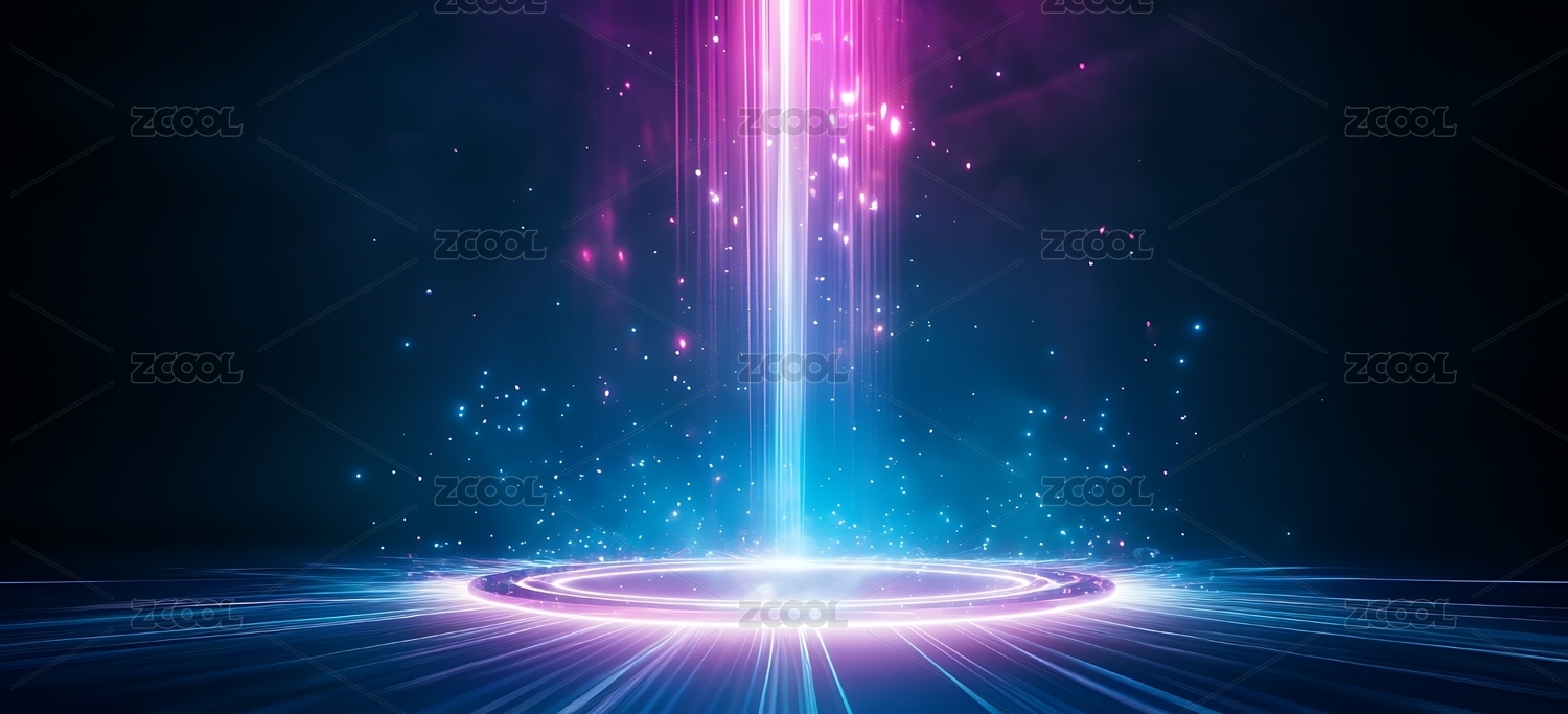 发光圆环科技感舞台 炫彩光束照亮神秘空间