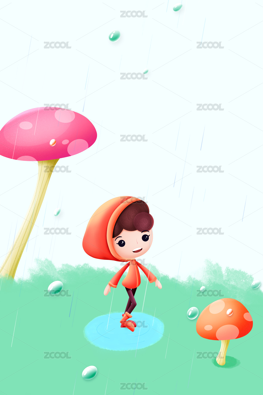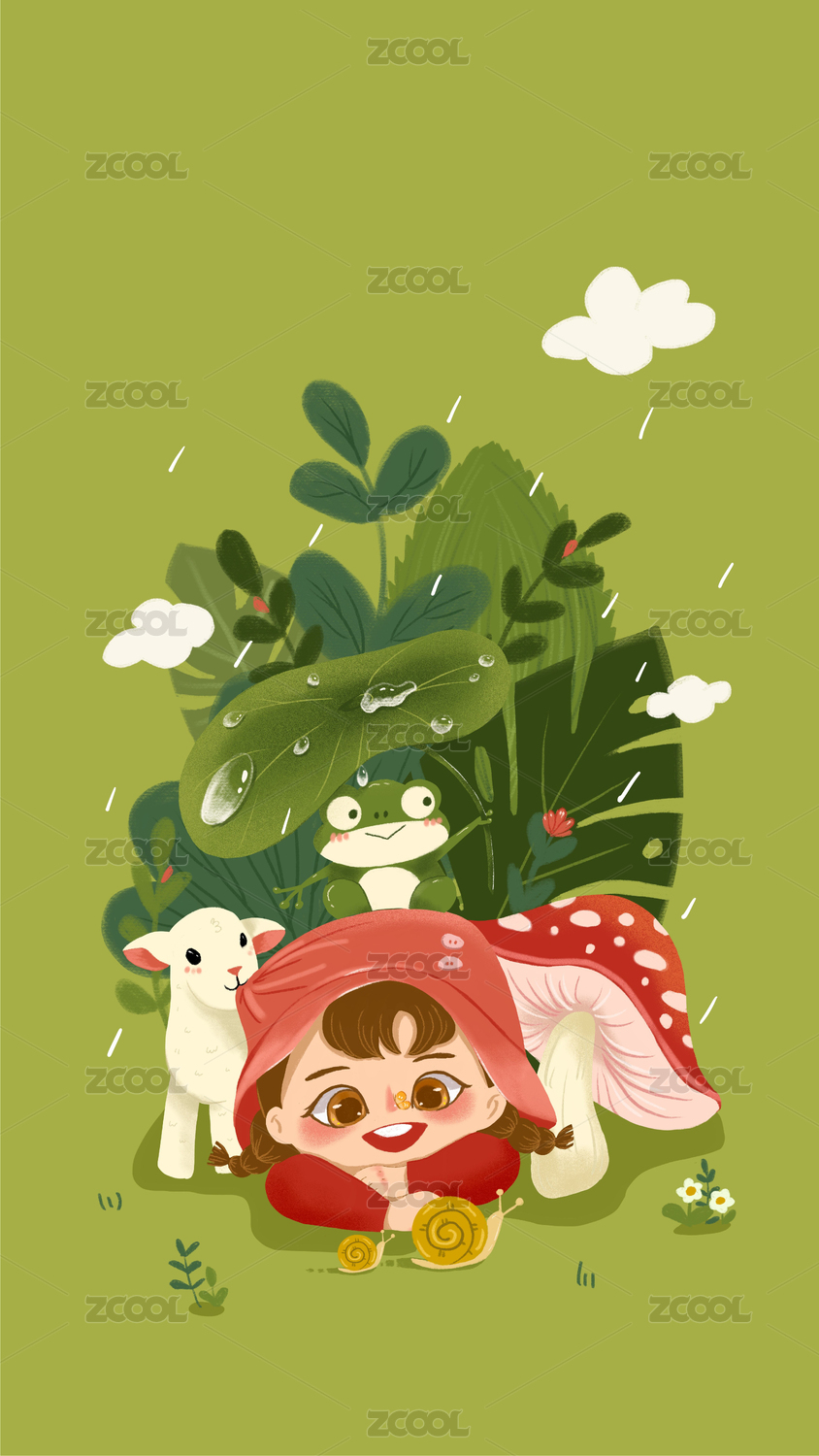 蘑菇,植物,绿色,可爱,清新,下雨,雨天,女孩,绿植,长发女孩