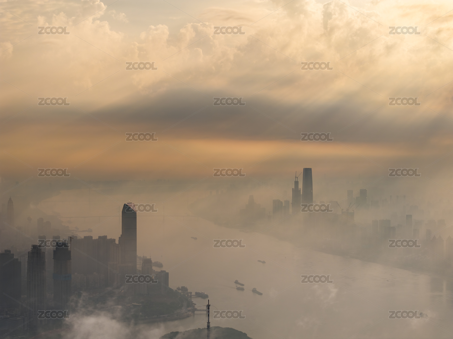 上海陆家嘴迷雾大雾阴霾天平流雾霾医疗美容