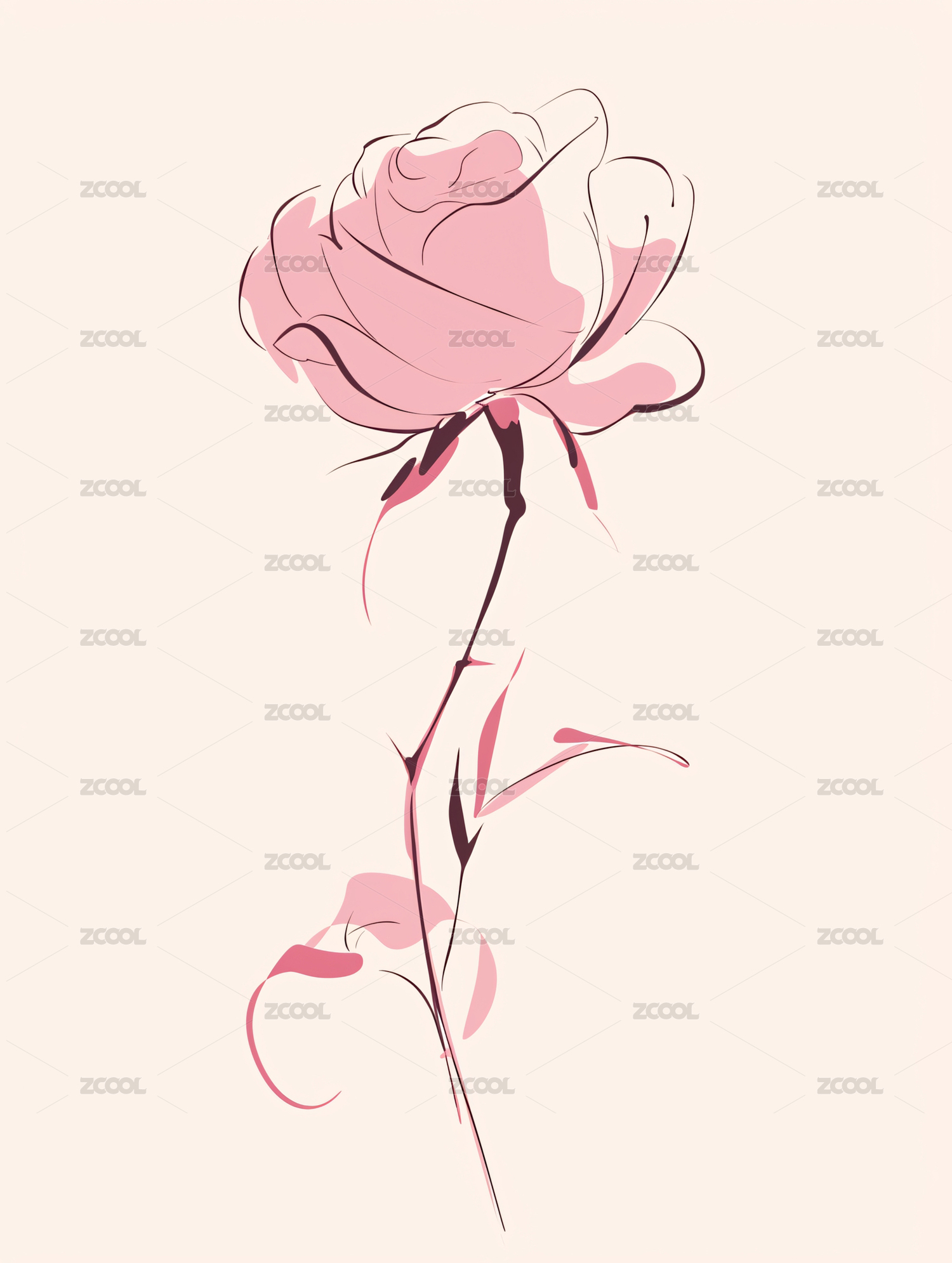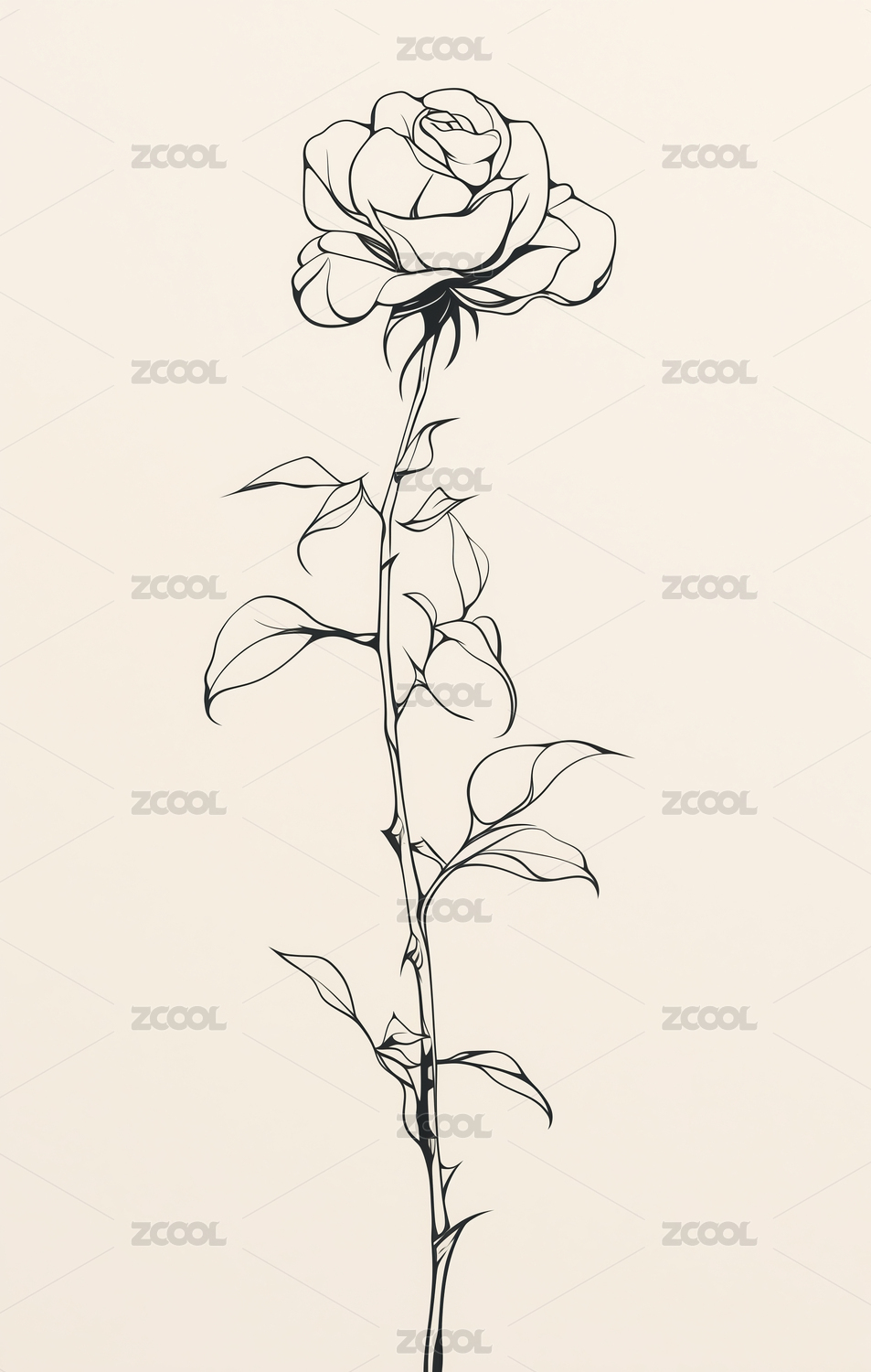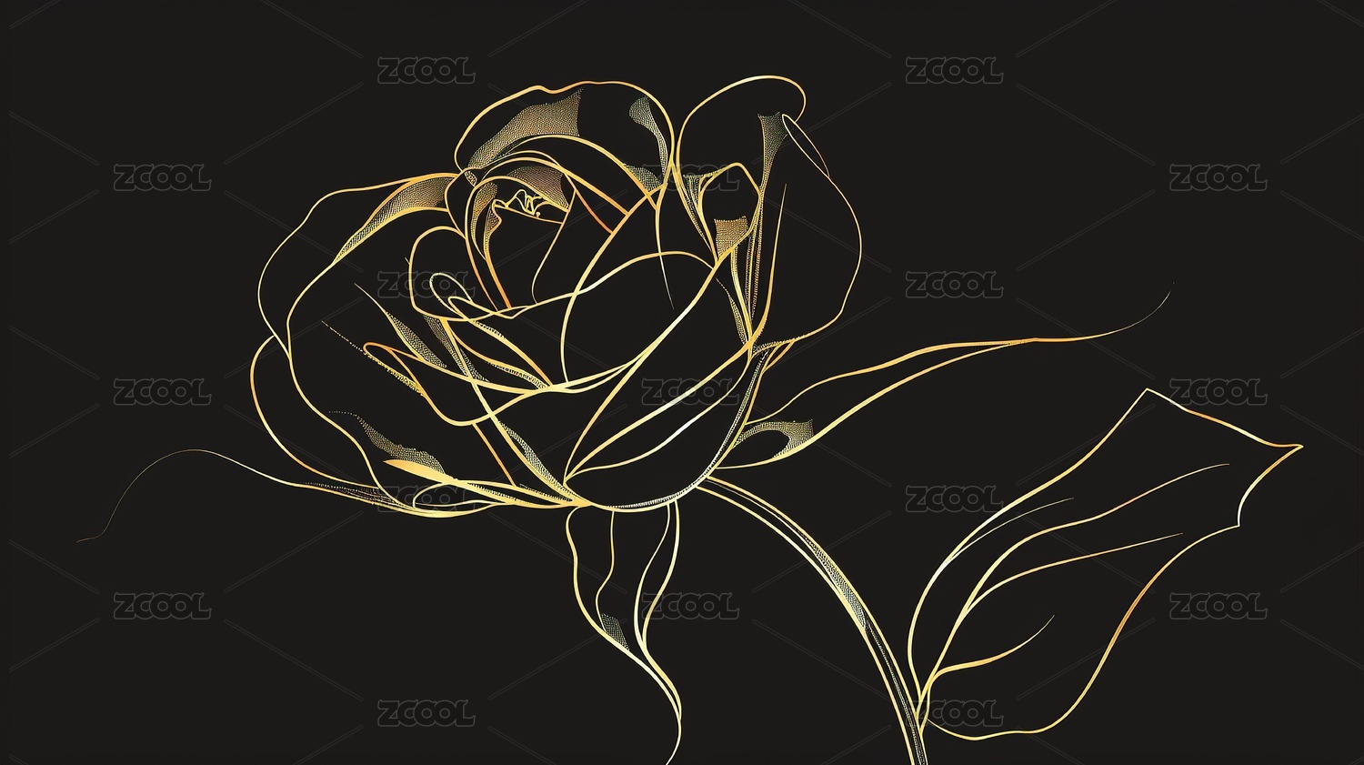 金色玫瑰花情人节浪漫轮廓白描线稿图案素材