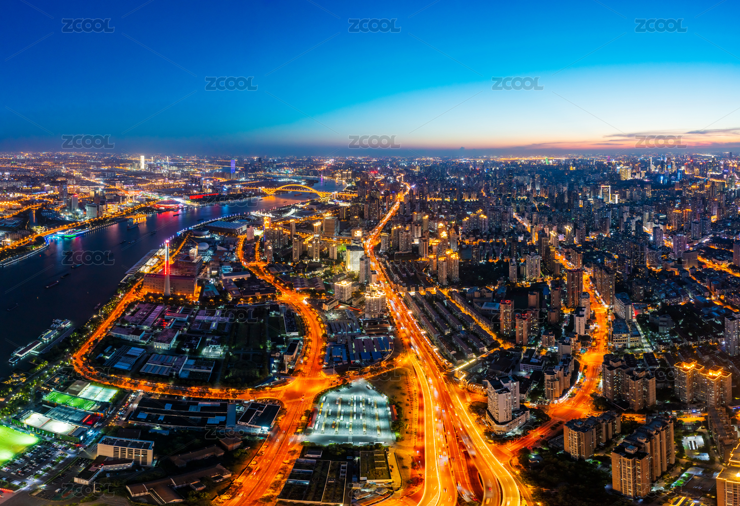 俯瞰航拍中国上海浦东陆家嘴南浦大桥夜景