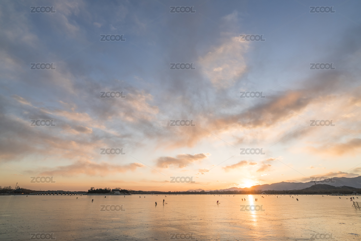 冬天,冬季,落日,夕阳,玉泉山,西山,冻冰,湖,冰面,湖面
