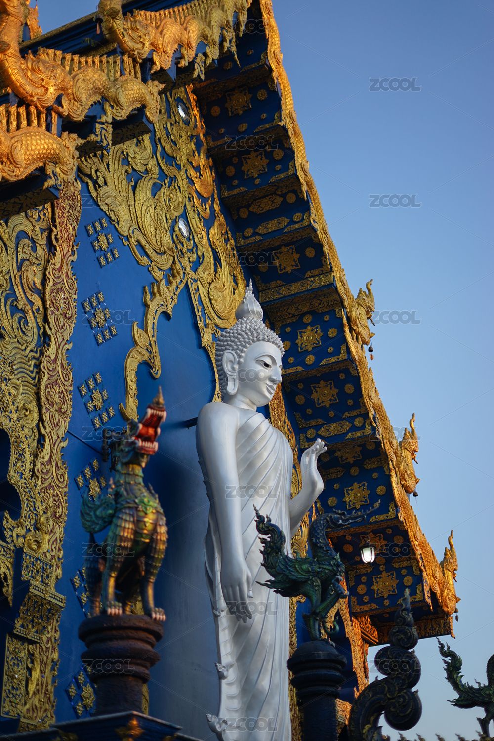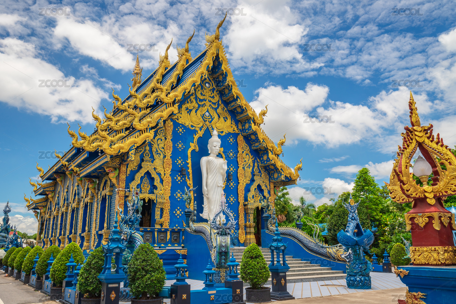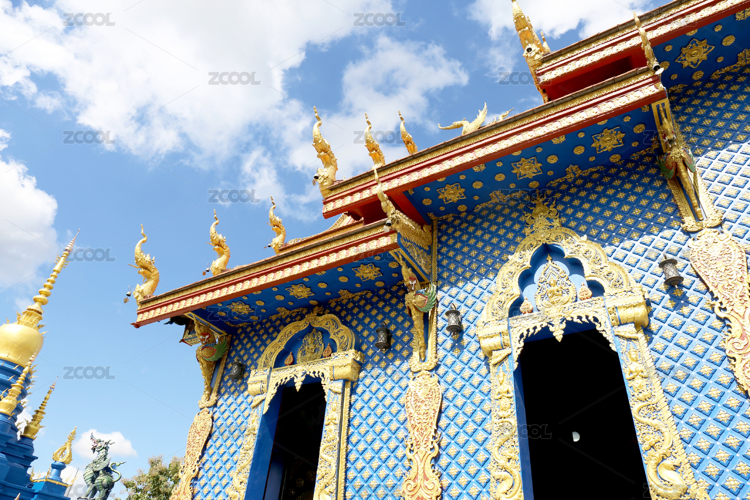 泰国清迈清莱蓝庙主殿外墙的屋顶