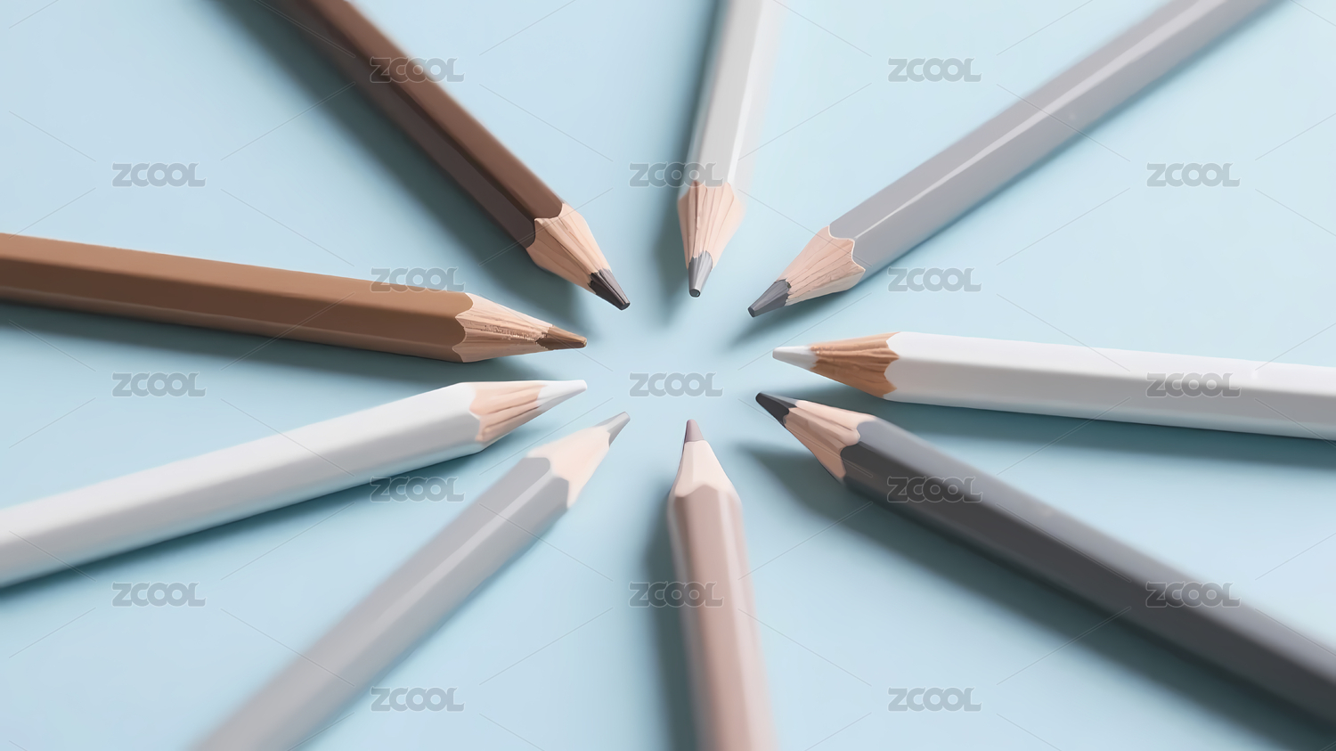 薄荷绿色简约简洁极简风格铅笔平铺背景