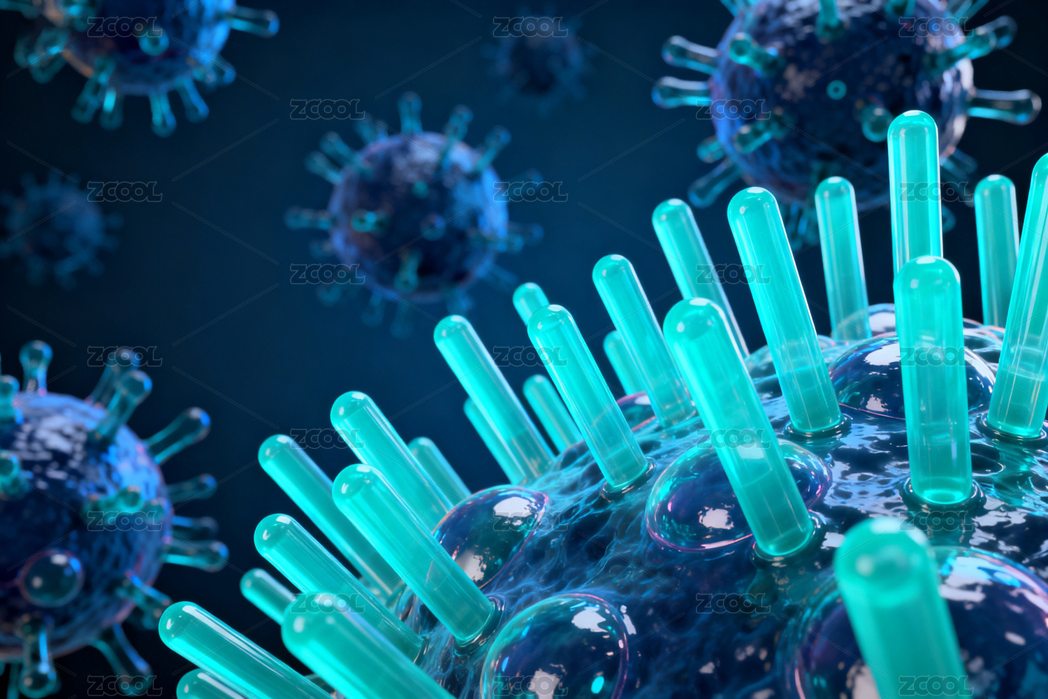 蓝色背景下的病毒细胞显微图像
