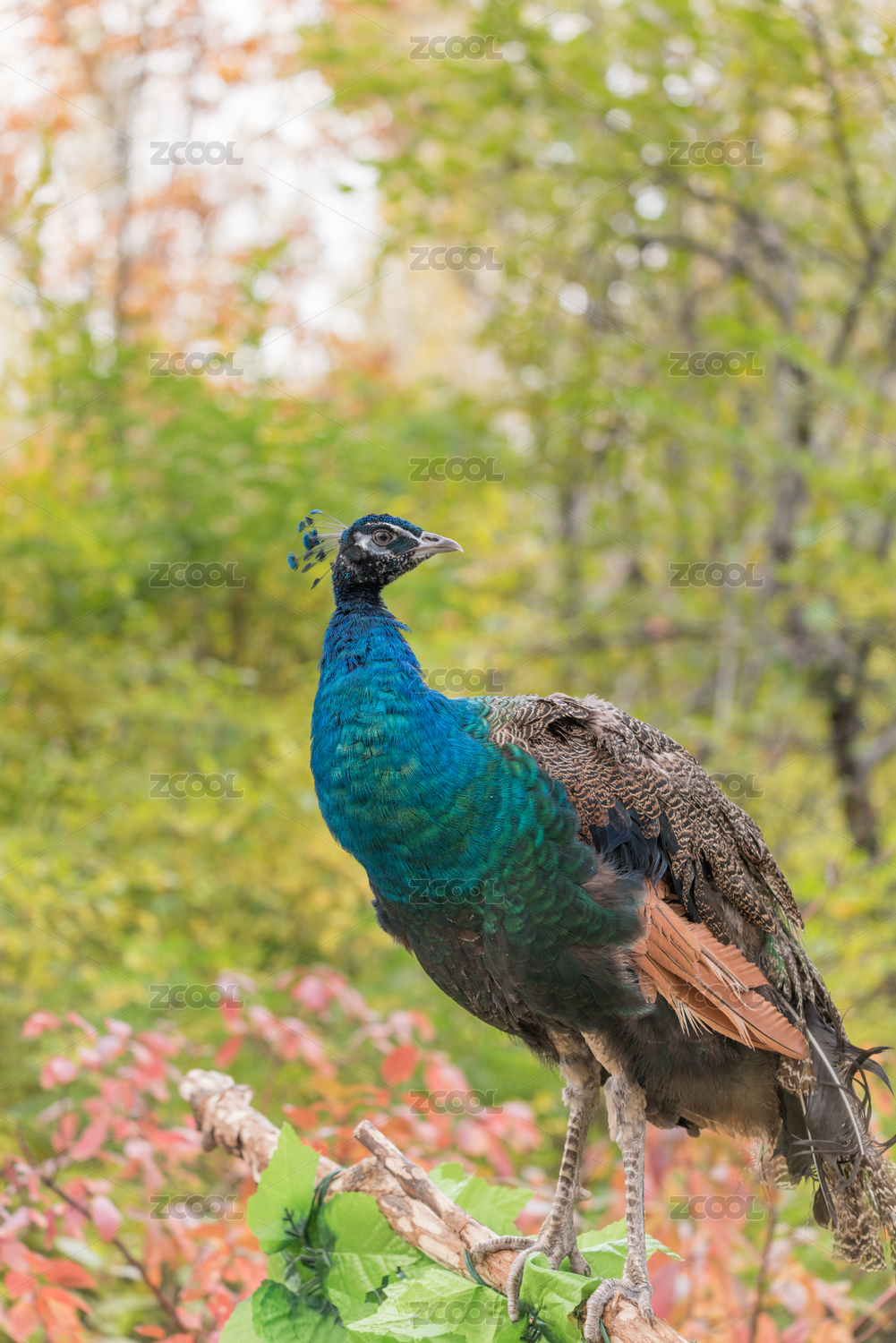 一只成年雄性孔雀在炫耀自己美丽的羽毛