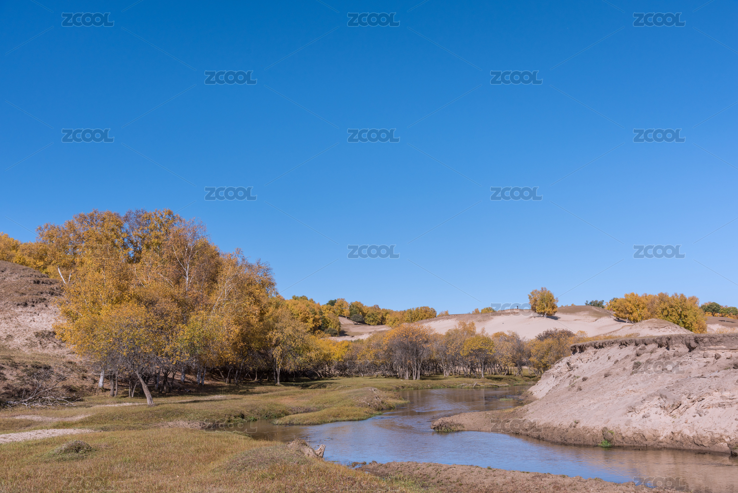 秋天内蒙古乌兰布统坝上草原的沙地和白桦林