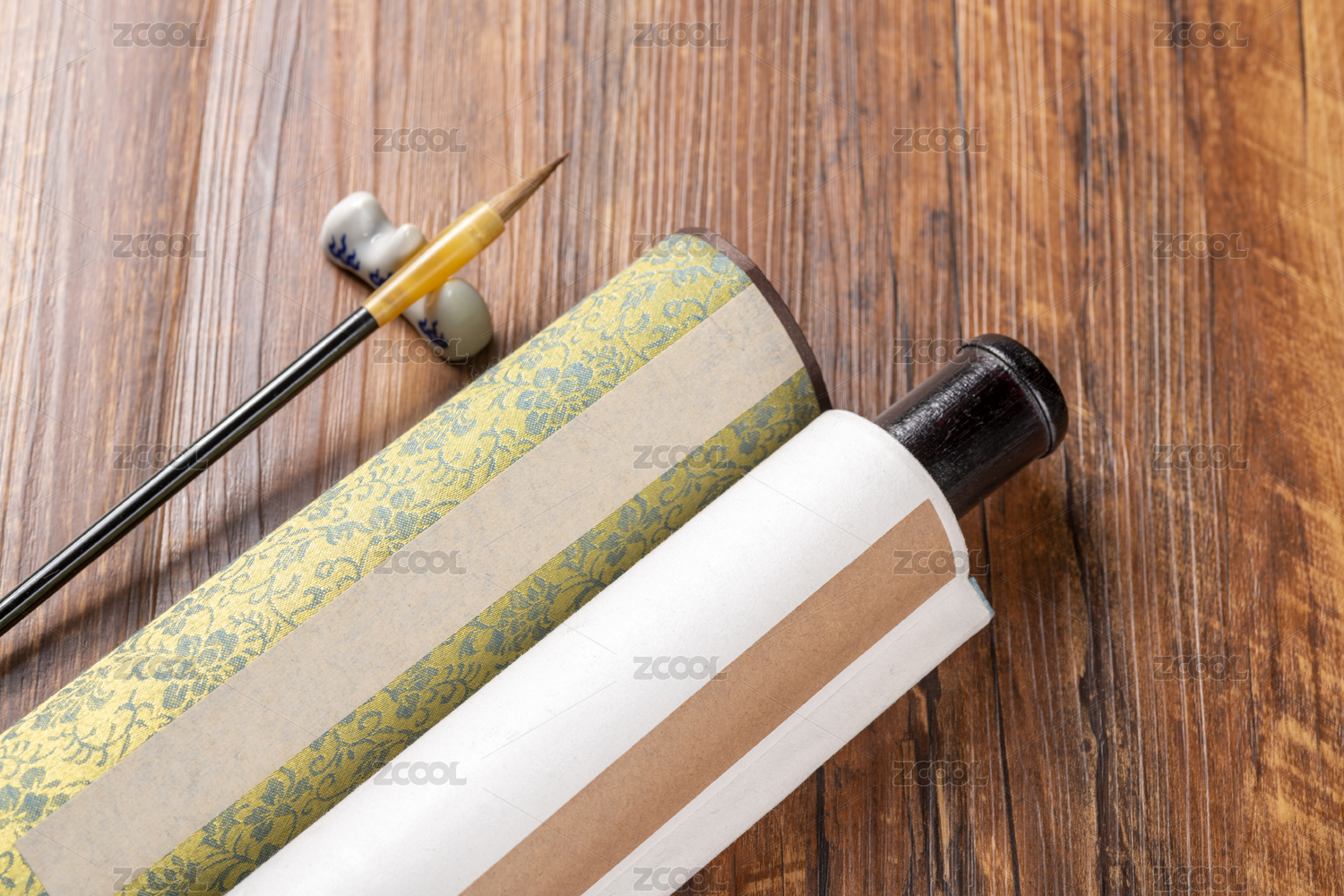 一副中国复古风格的卷轴画轴