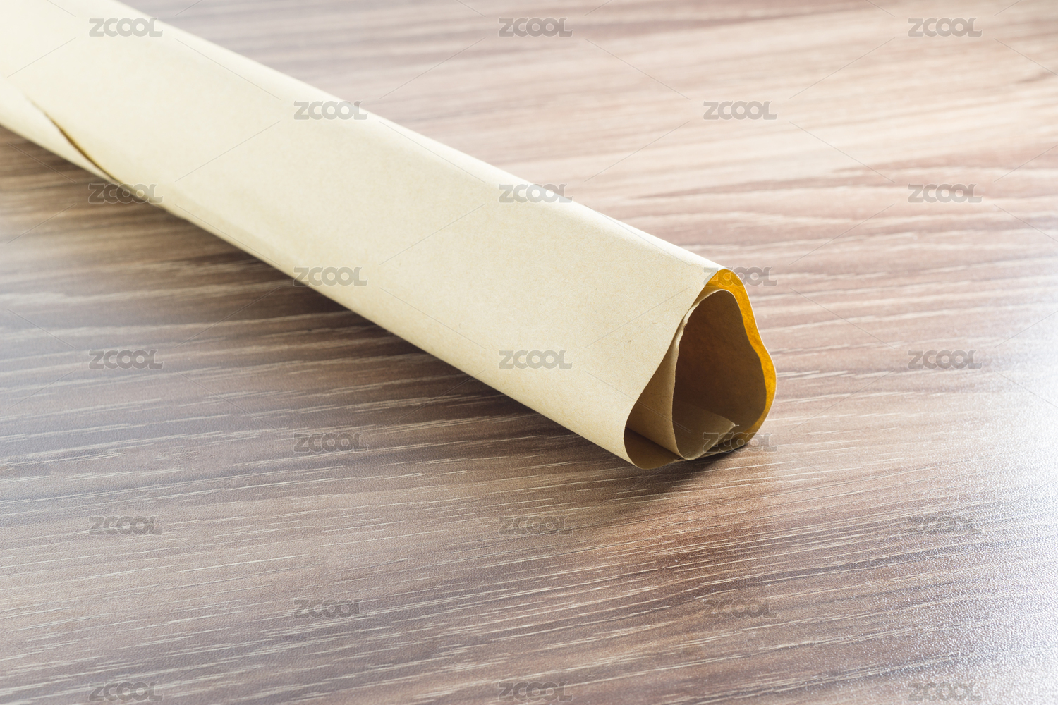 木质背景上的牛皮纸卷
