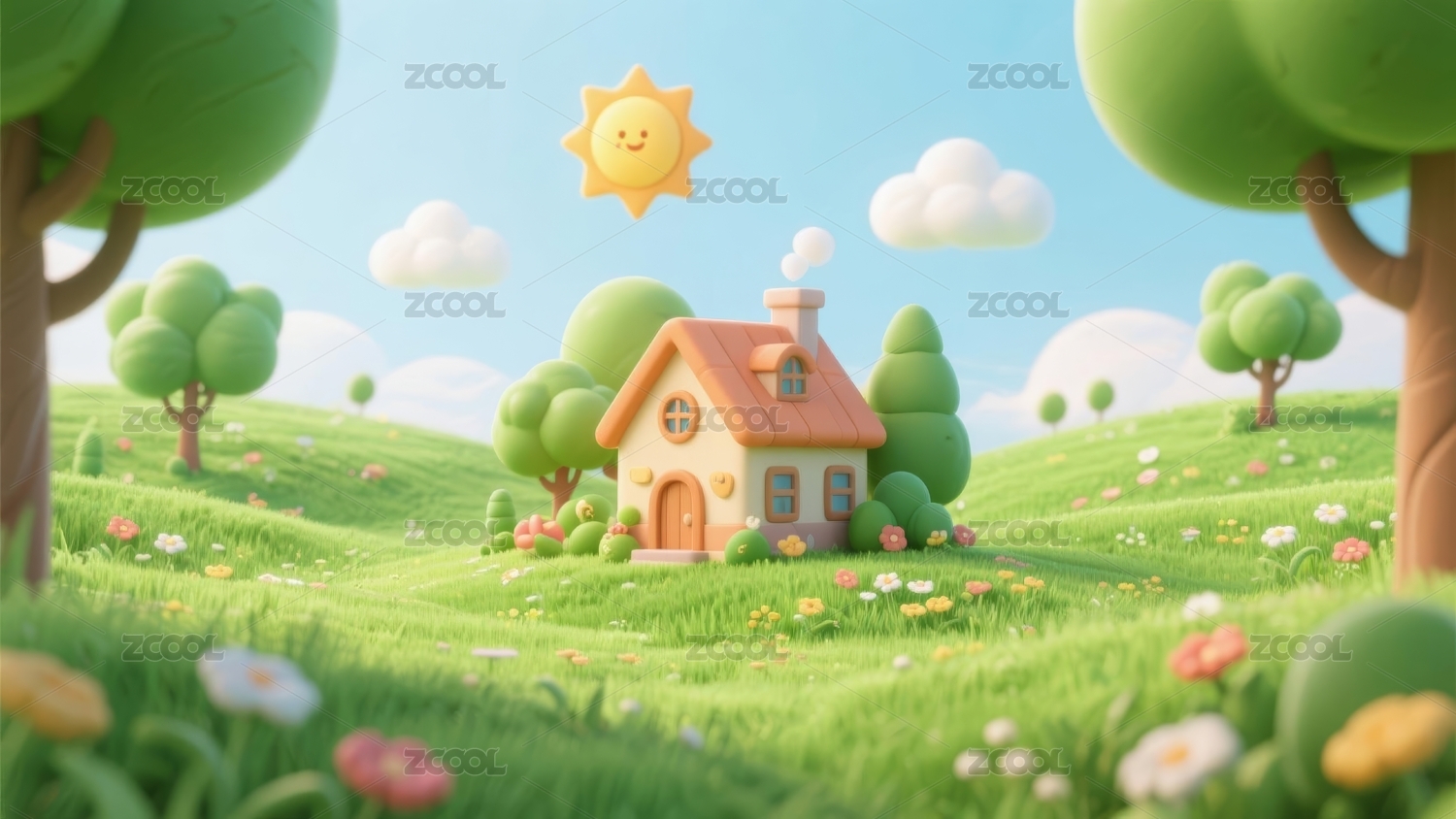 花园,房子,家,装饰,绿色,插图,植物,自然,设计,叶子