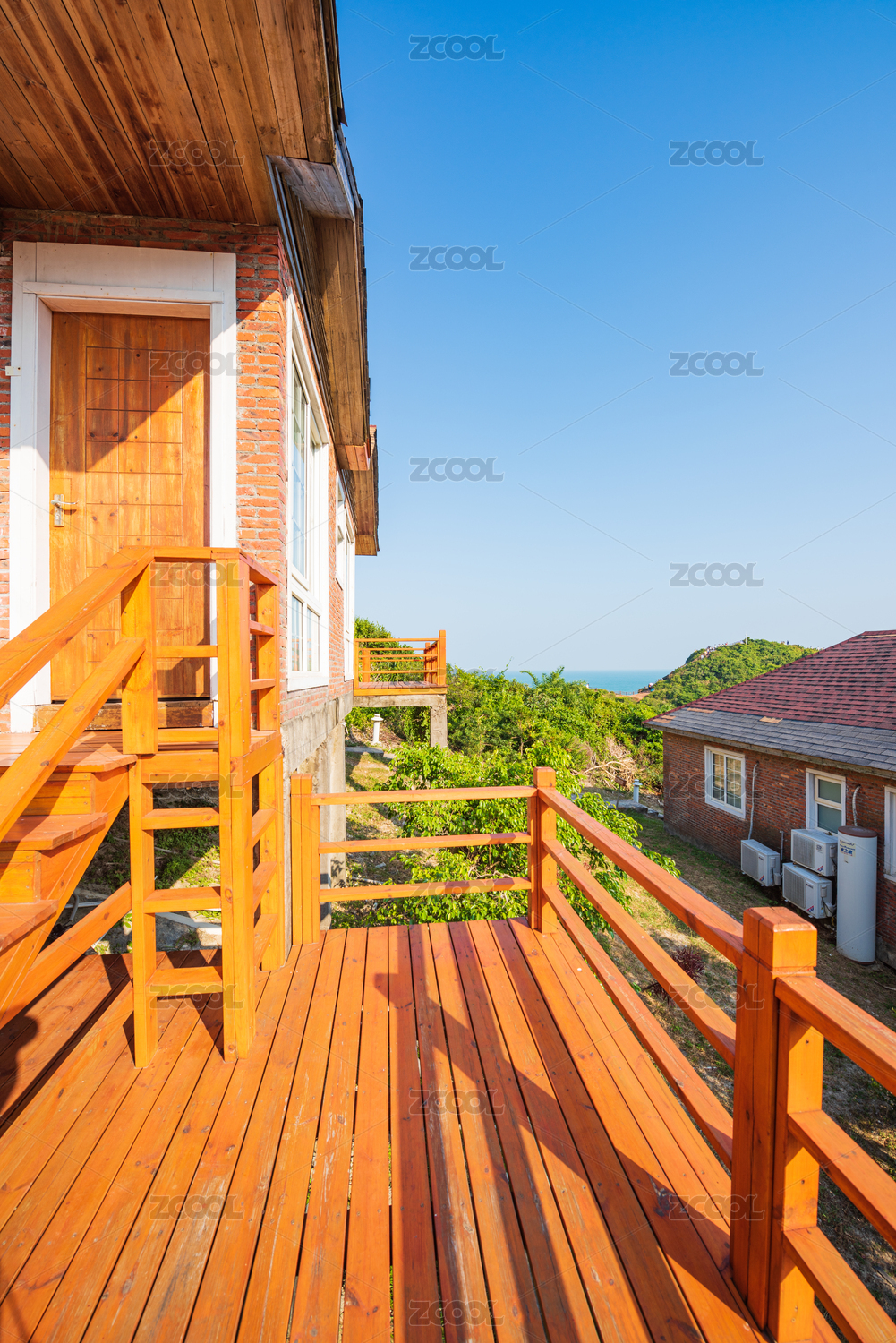 中国深圳大鹏杨梅坑鹿嘴山庄度假小屋前的阳台与楼梯