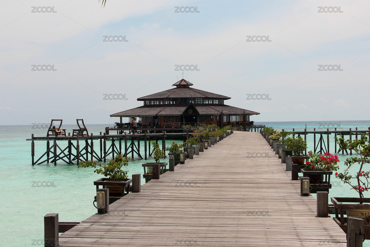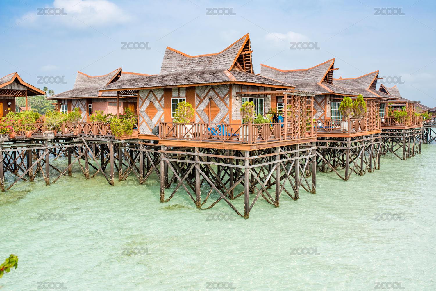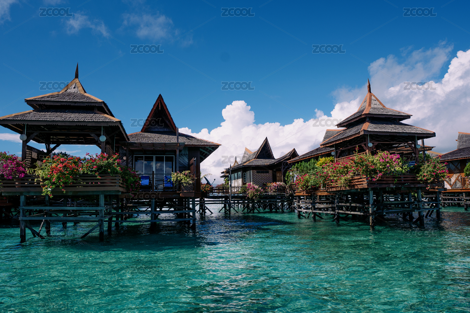 夏季白天马来西亚马步岛海上度假别墅