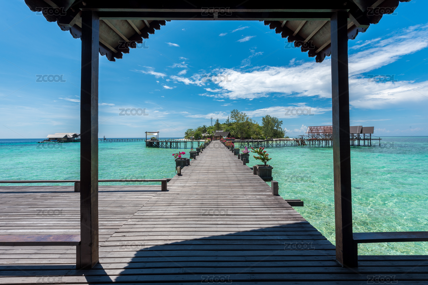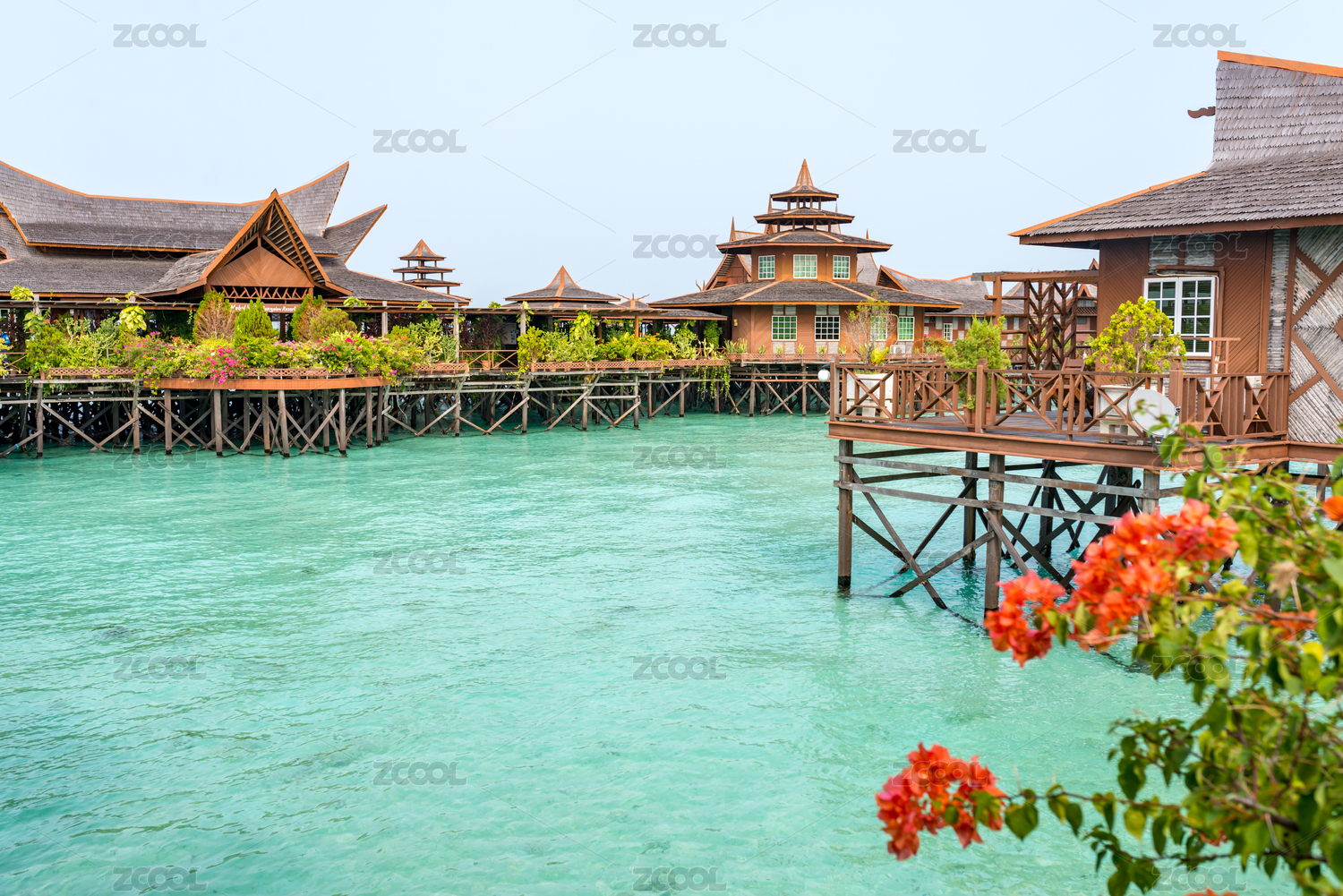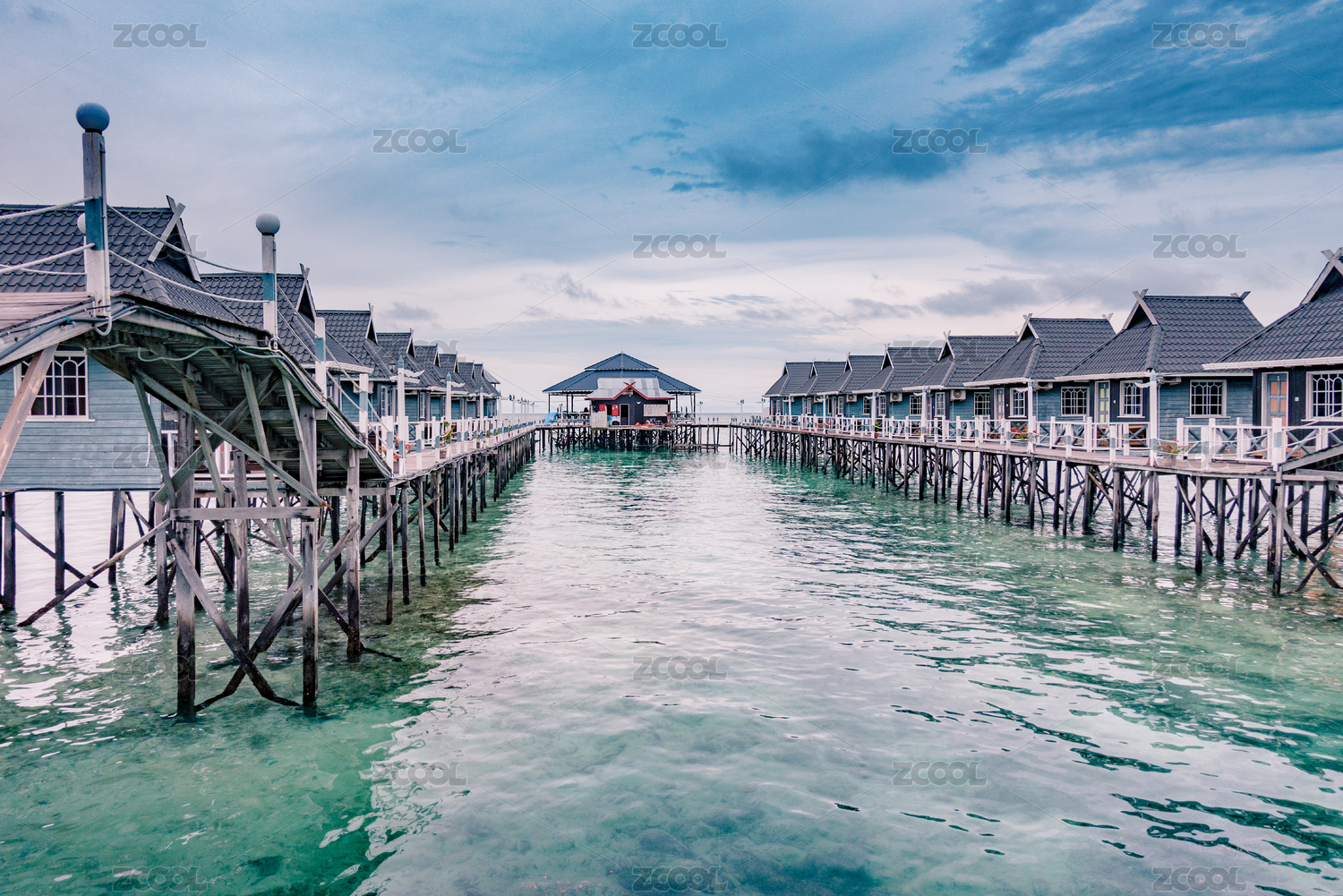 夏季白天马来西亚马步岛海上度假别墅