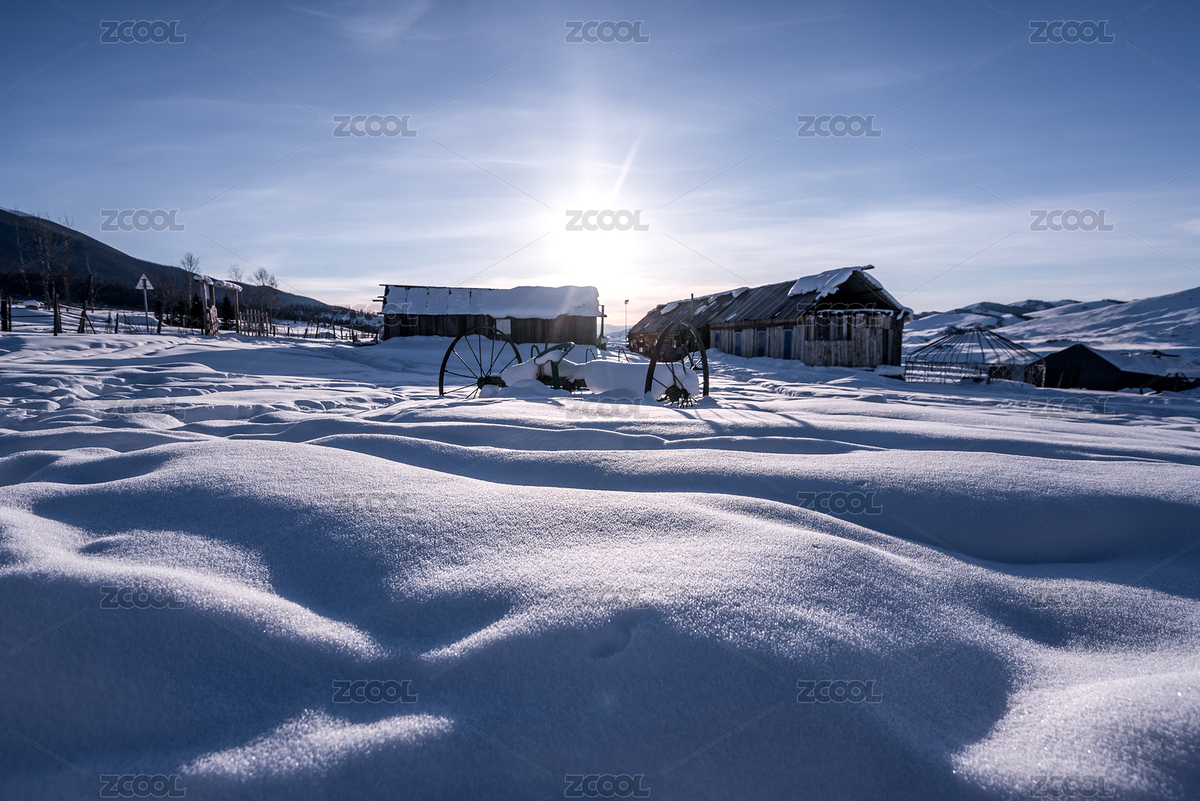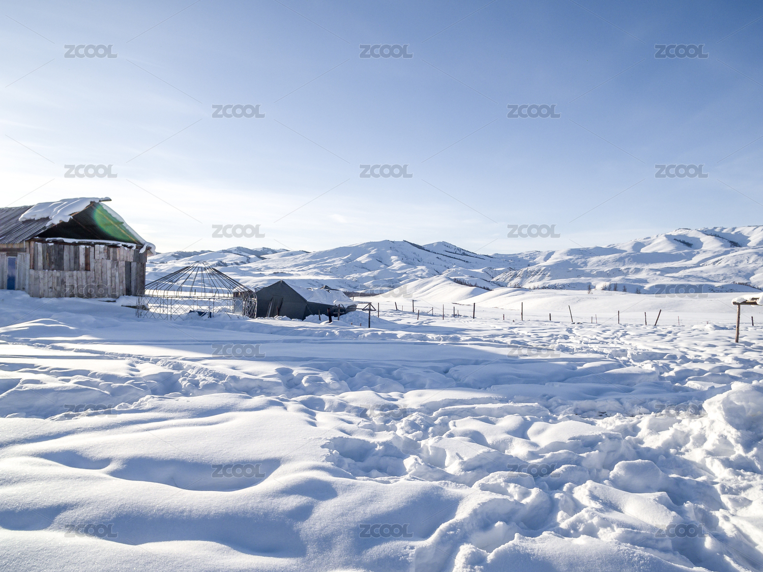 新疆,白哈巴,冬季,雪道,雪,山脉,屋顶,居住区,天空,白天